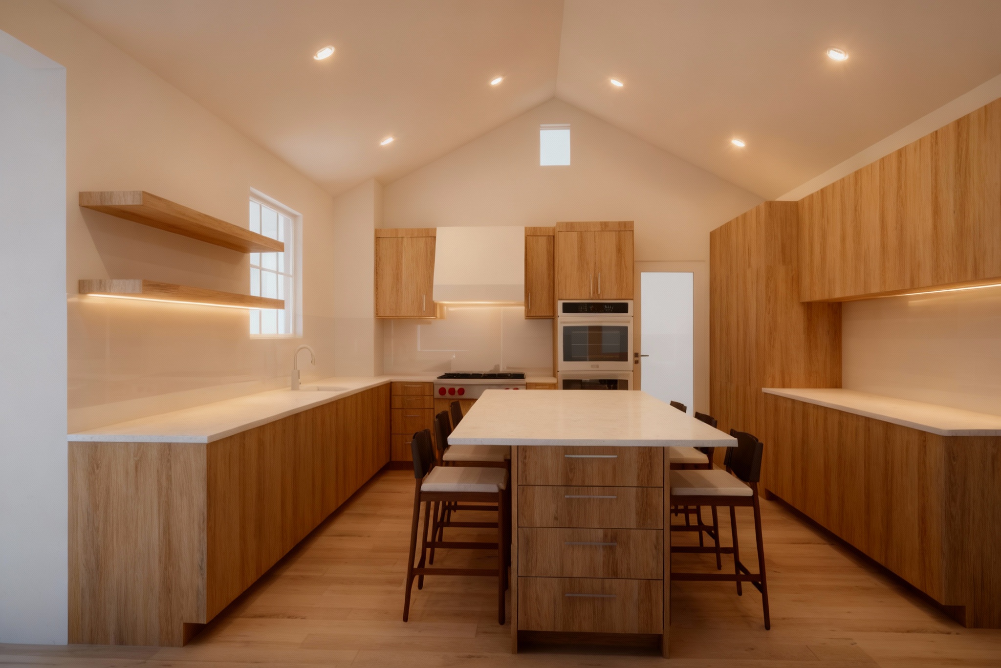 exterior rendering of a regional airport terminal and control tower modern yet timeless design combining traditional proportions with contemporary materials the architecture features warm white stucco with subtle beige undertones black metal accents and a highlighted control tower clad in perforated metal panels with soft warm light glowing behind the screen the scene should convey an elegant balanced evening atmosphere with warm sky tones sunset or dusk light the building should be well lit with warm ambient lighting emphasizing textures and architectural depth without overexposure include minimal yet refined landscaping low grasses simple planters and native trees arranged in a clean composition that complements the architecture the overall tone should feel clean sophisticated and inviting blending regional character with a timeless modern aesthetic render in high detail and realism with balanced contrast and soft reflections to highlight material richness and lighting warmth architecture