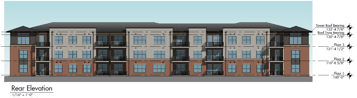 render a modern apartment building with red brick exterior black metal accents and cladding include landscaping on the ground patio spaces and plants on the balcony ensure large expansive windows with lots of natural light