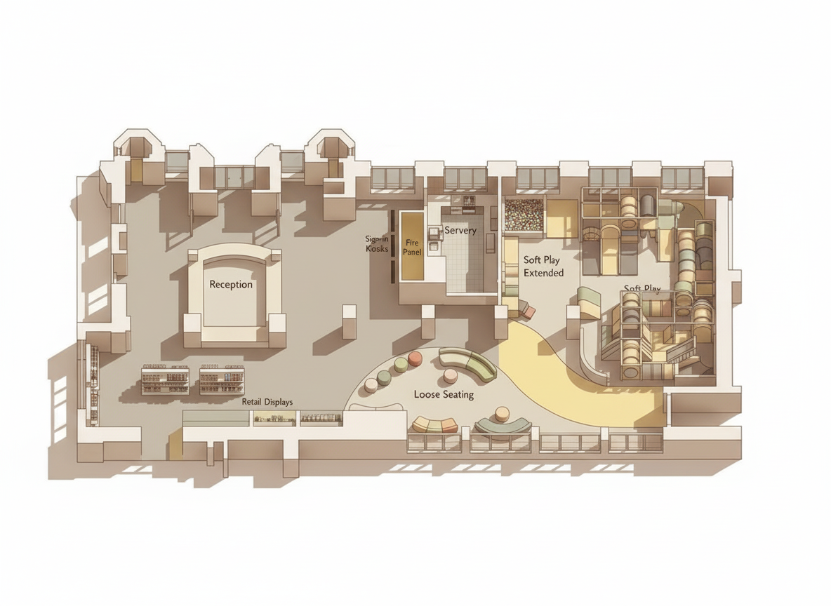 remove arch reflection in mirror change vanity to light wood bring mirror and vanity forward to the arch is set back send arch backwards to sit on wall