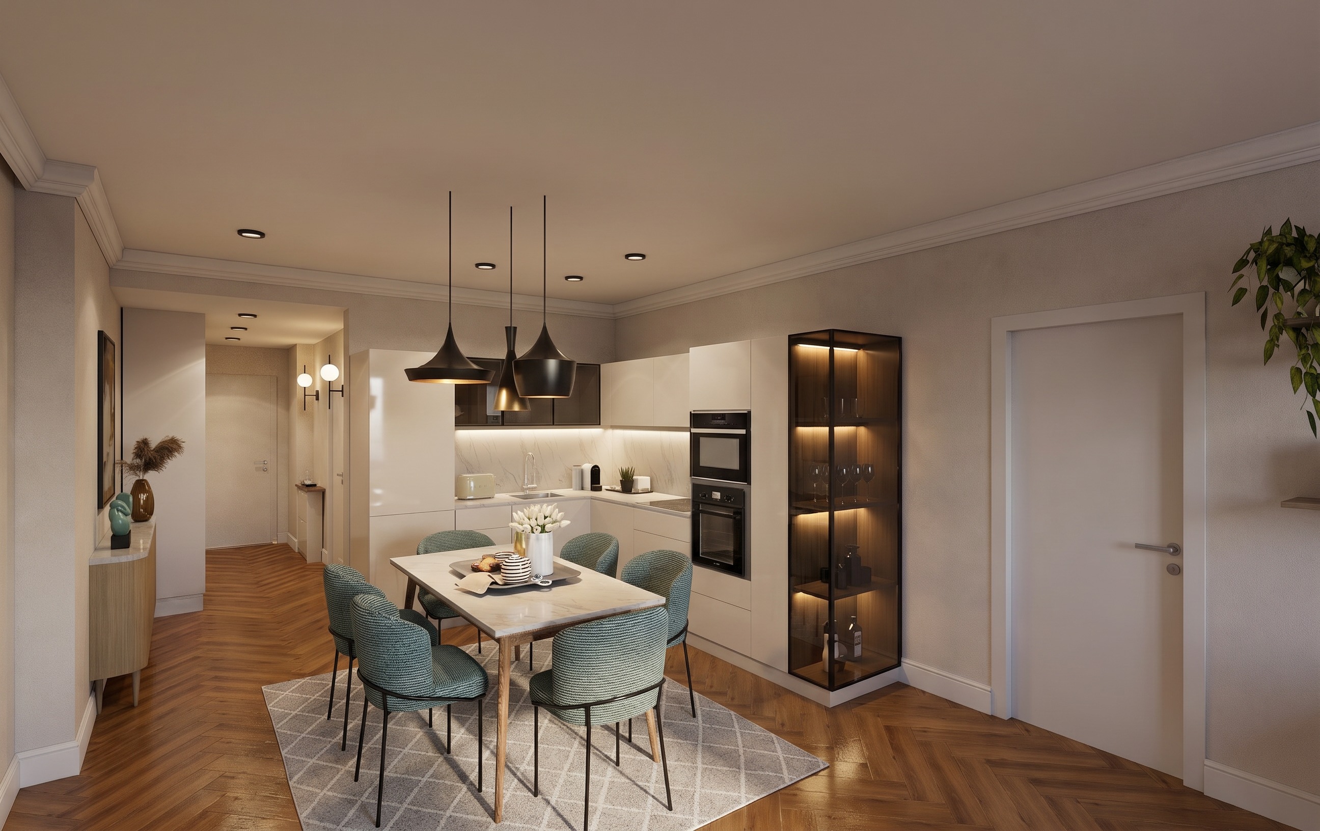 change the color of the lower and the standing kitchen cupboards to light oak the upper cupboards remain as it is