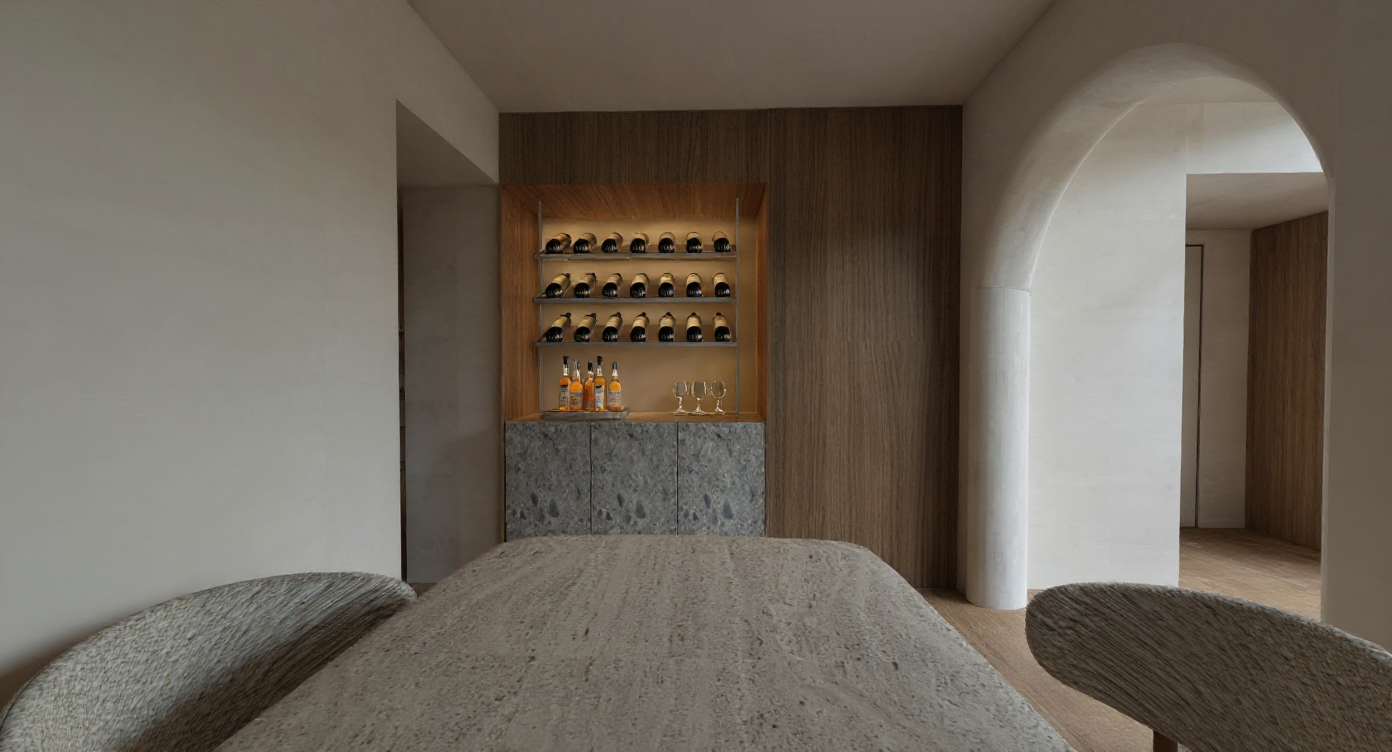 modernist exterior shot create an ultra realistic photo of this home use black and wood tones concrete front patio landscape front yard architecture