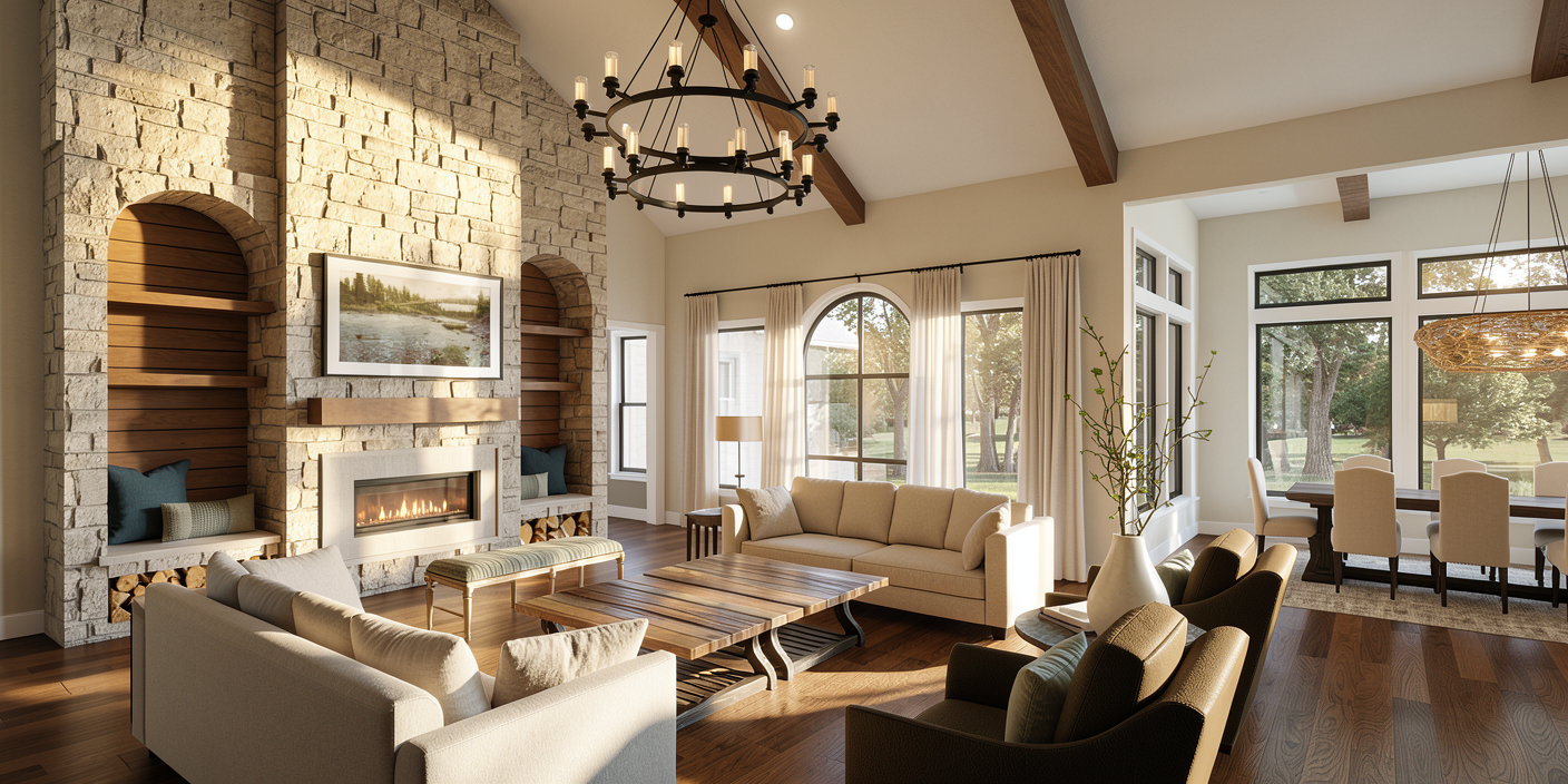 retain structure and make materials look new open field background add grass bush in with flax under windows mid grey cladding