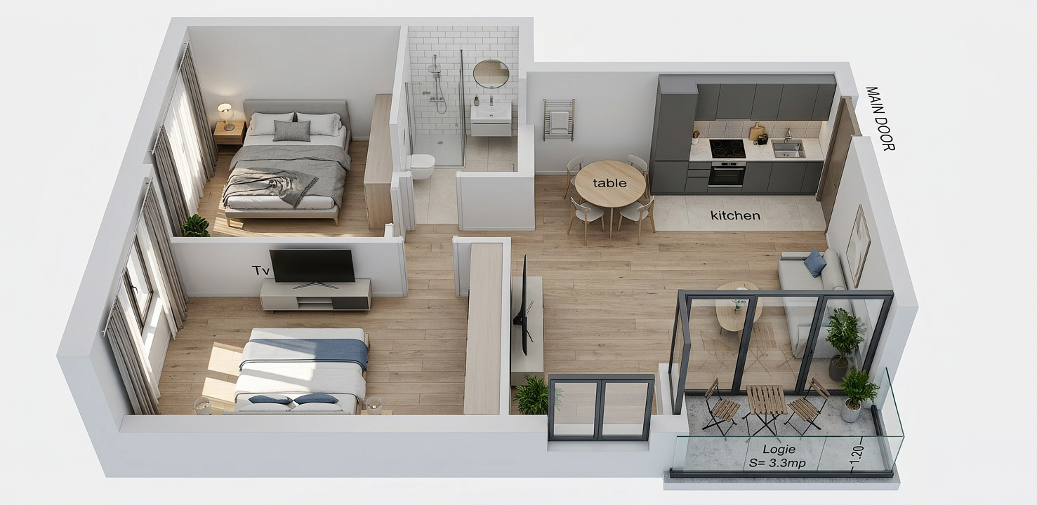 cambia solo el color de los muebles de la izquierda que aparecen en color madera por lacado en un gris liso y tambi n el enmarcado de madera de la ventana de la derecha s lo esa ventana tambi n por color liso gris todos los dem s muebles blancos d jalos como est n igual que todos lo dem s tambi n d jalo como est