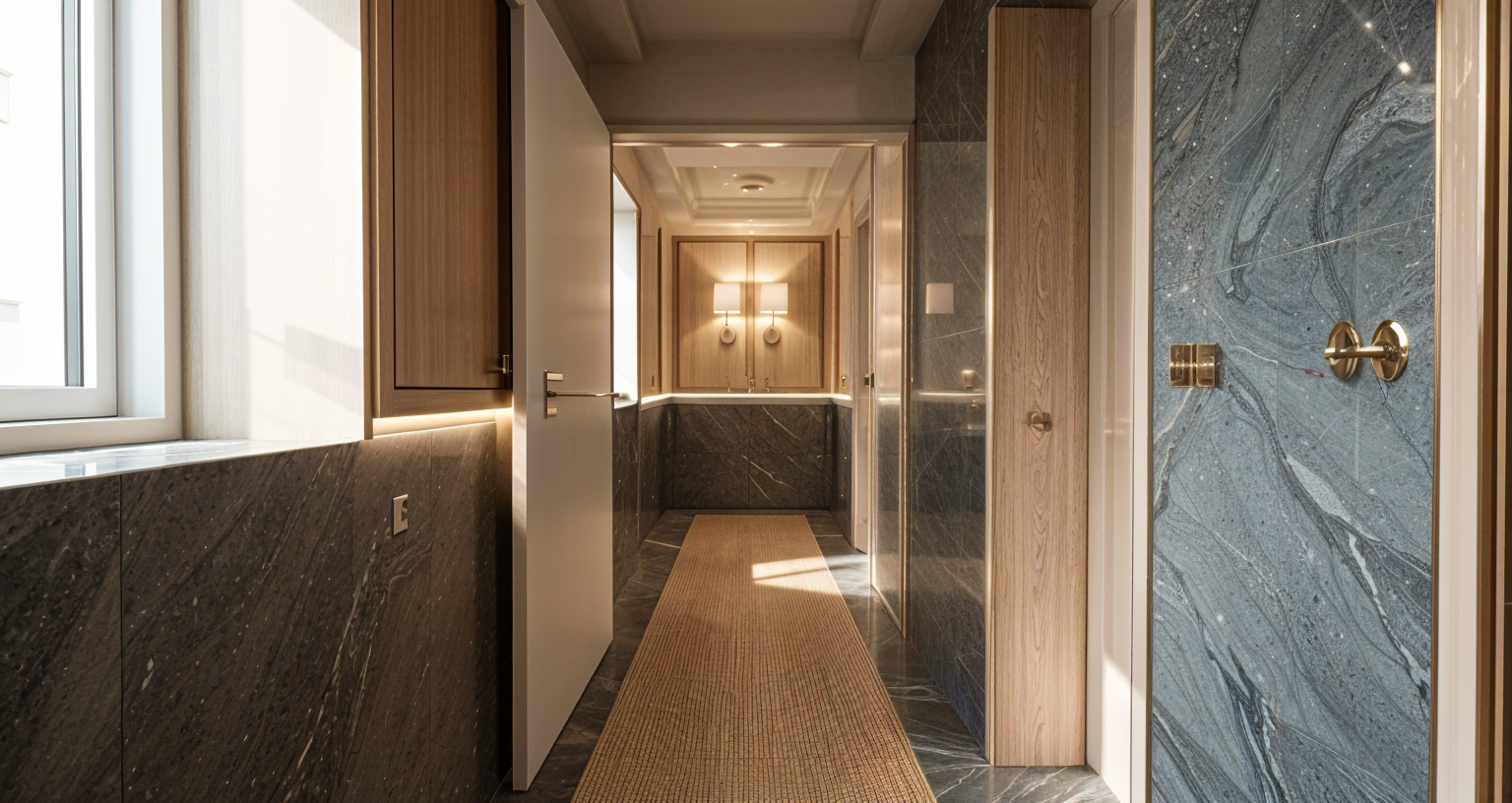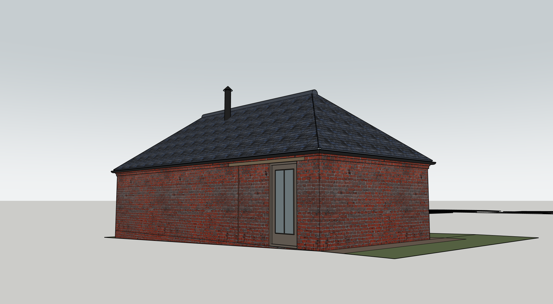 barn conversion plain clay tiles reclaimed red brickwork dark painted door open countryside