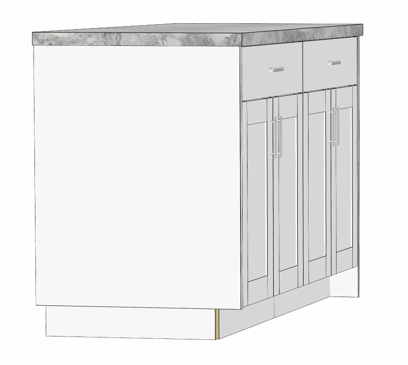 finish the toe kick to match the cabinet color keep the background and floor as white