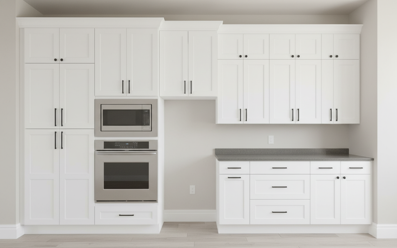 white painted cabinets black faucet all cabinet doors use provided elevation render make it realistic