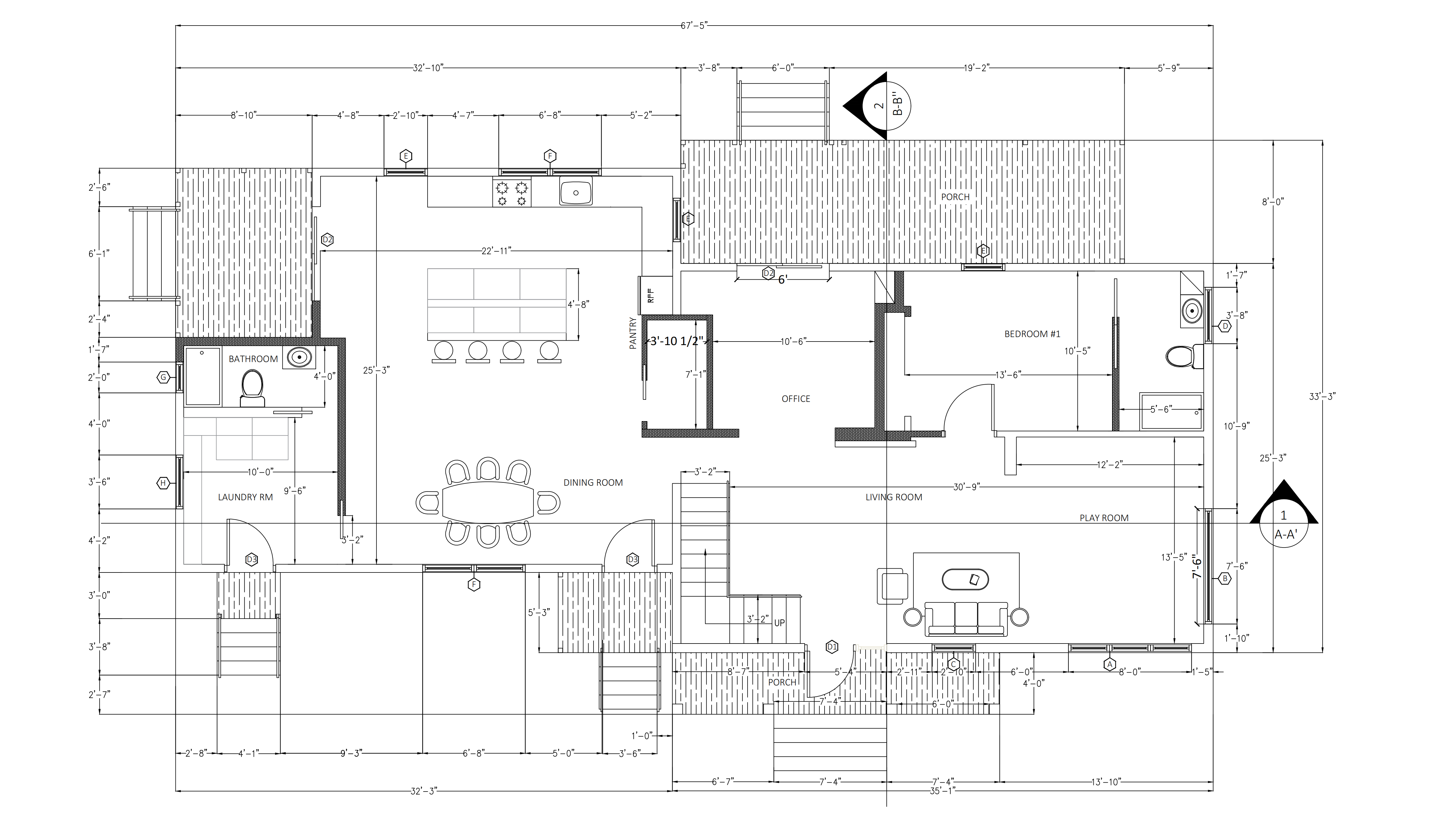 convert this floor plan into a realistic isometric 3d view of a full house show the space from an elevated angle with furniture walls and details visible create a beautiful architectural rendering of this modern floor plan use soft neutral tones for the walls incorporating light beige and cream highlight wooden elements with rich warm oak textures feature the dining room with elegant dark brown furniture and a mahogany dining table for the living room use plush light grey sofas with navy blue accents incorporate natural lighting with large windows casting gentle shadows the atmosphere is calm and inviting with a touch of sophistication and modern elegance surround the exterior with lush greenery and vibrant flowers for a serene environment use the same furniture as shows on the plan do not change the orientation of the floorplan