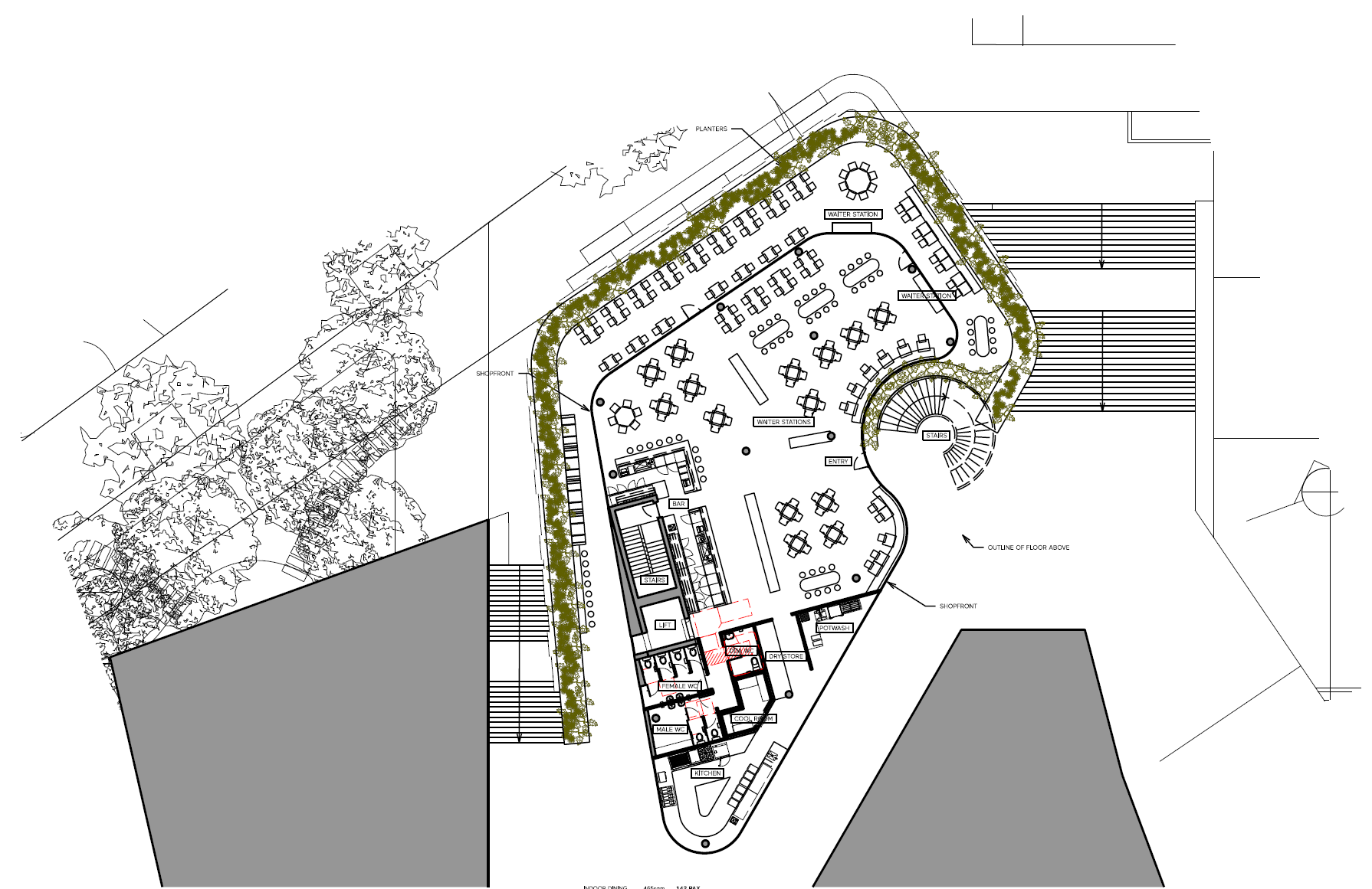 make internal flooring travertine outdoor flooring light grey concrete bars and counters to be terracotta tiles bathrooms to have terracotta floor and furniture be a mix of american oak navy blue tiles and white chairs