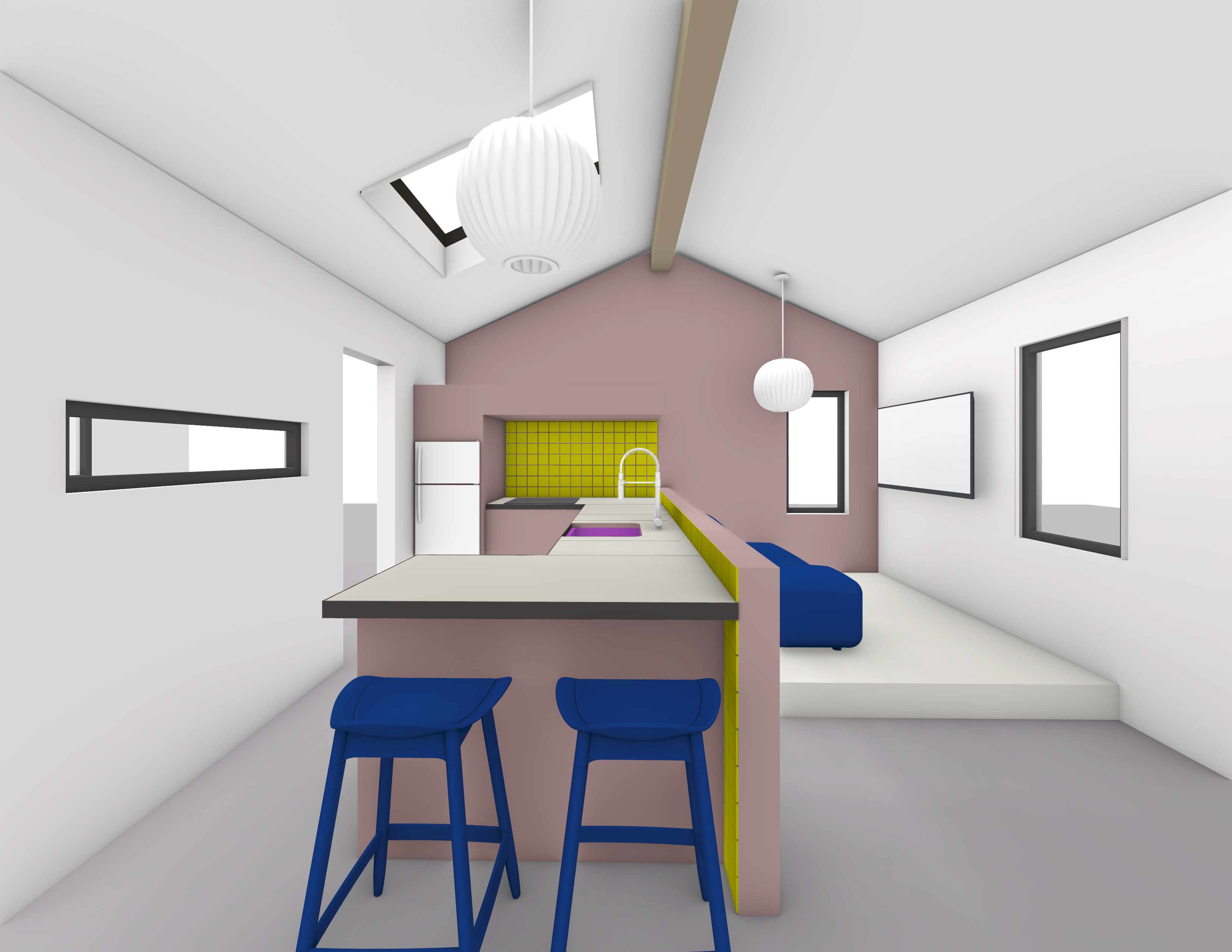 flood this space with natural light fro skylight above it s mid day in loma linda with direct sunlight concrete kitchen counter top