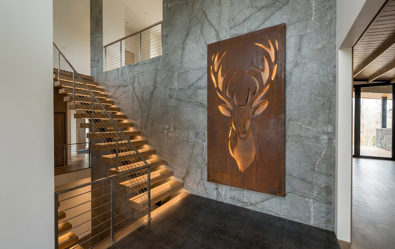 convert this architectural rendering into a highly realistic editorial style luxury real estate photograph suitable for marketing and listing imagery maintain the exact architecture layout geometry window placement and proportions exactly as modeled do not redesign restyle or modify the architecture in any way do not move walls windows or structural elements enhance realism only through natural lighting accurate material texture subtle reflections and soft shadow depth the image should feel like a professionally photographed architectural digest style interior used for luxury real estate marketing natural light should be softly entering through the windows in an editorial photography style creating gentle highlights natural interior bounce light and subtle shadow depth similar to high end architectural photography the final image should appear highly realistic refined and editorial similar to a luxury architectural digest feature or professionally photographed high end listing do not alter architecture layout geometry or materials only enhance realism and staging add a realism prompt that emphasizes photo realistic image with soft natural light coming from the left side door here is the added realism section you can append to your prompt it keeps everything you already wrote but pushes the image toward photorealistic real estate photography with the light specifically coming from the left side door