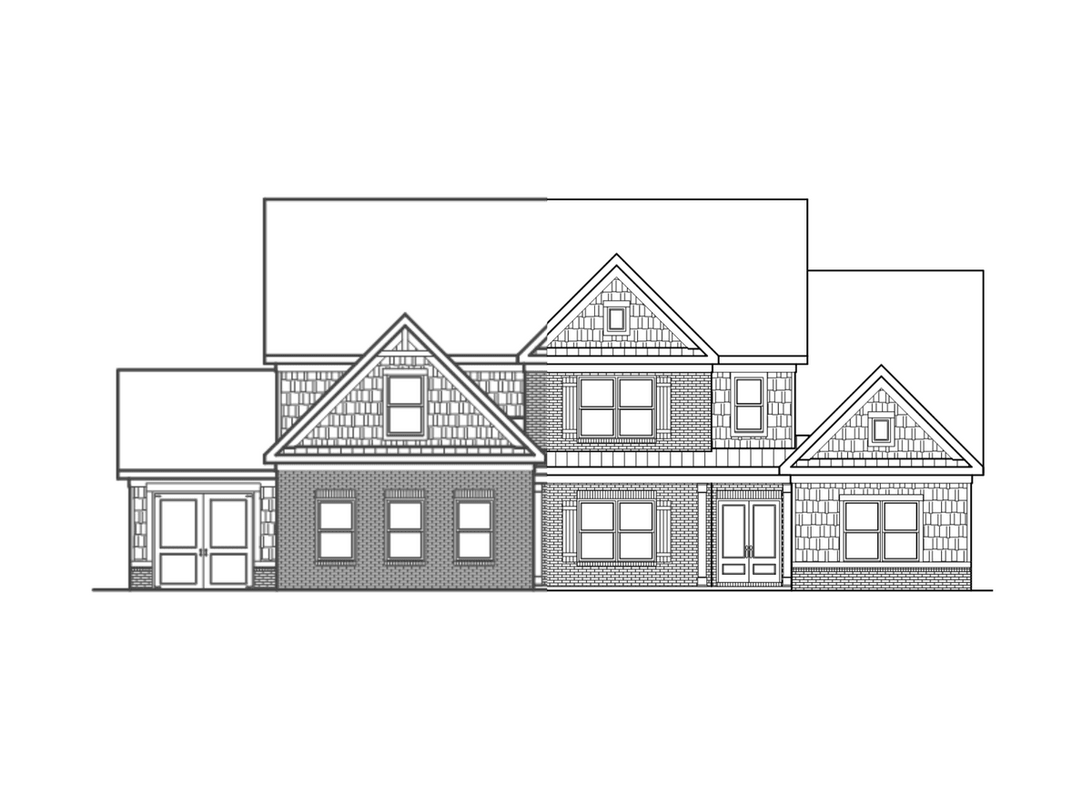 dark brown roof cream brick light grey colors trees behind 1 simple driveway realistic