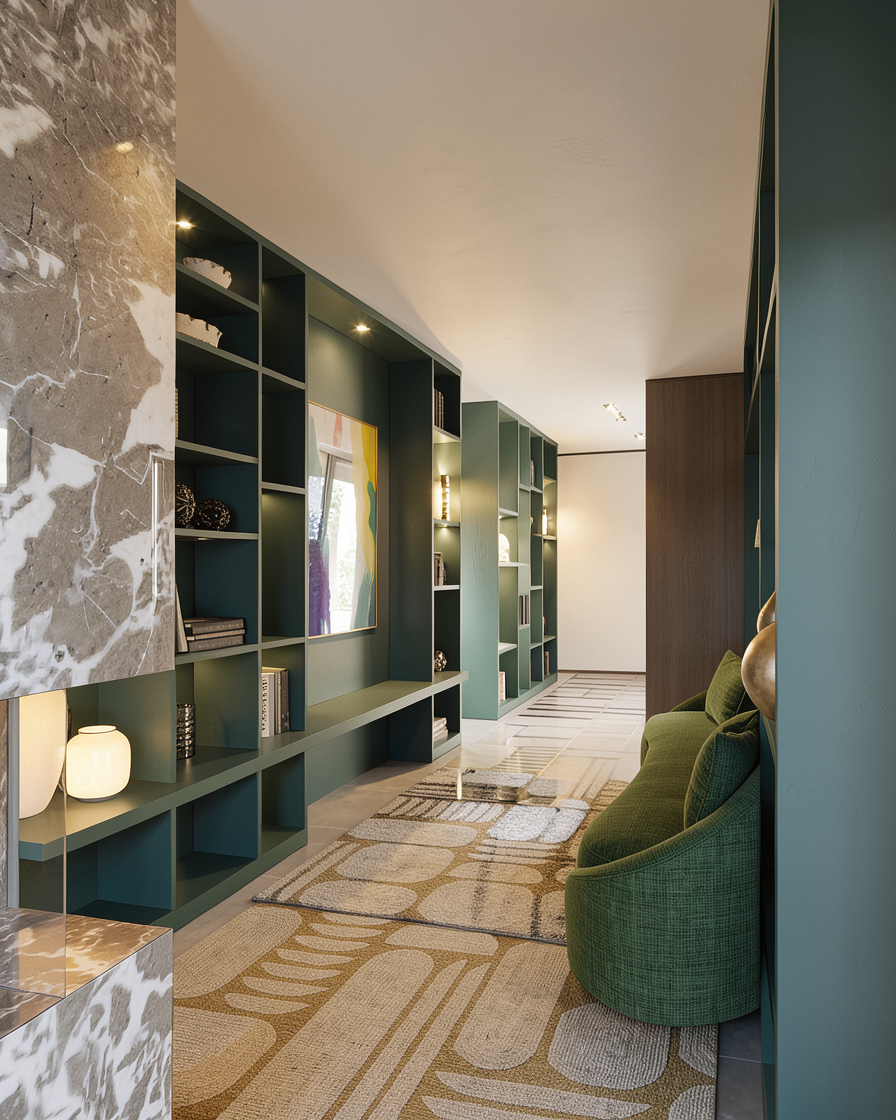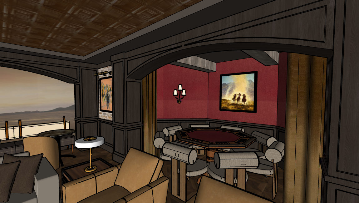 create a warm cozy rendering of this space keeping colors and all materials as is