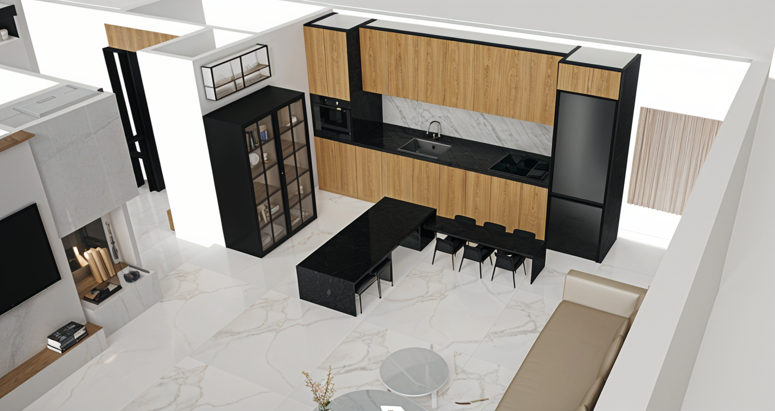 add two more floors on top of the buildings on the left side of the center church building architecture