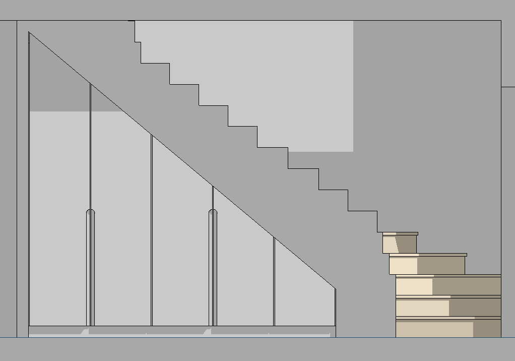 white plaster staircase with wooden tread layer gloosy white wardrobe