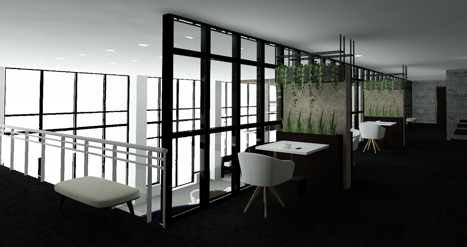 add human figure on the black floor keep ceiling white slightly cloudy day