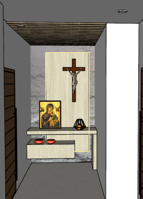 cove lights and pin lights near the door illuminates the area accent stone wall