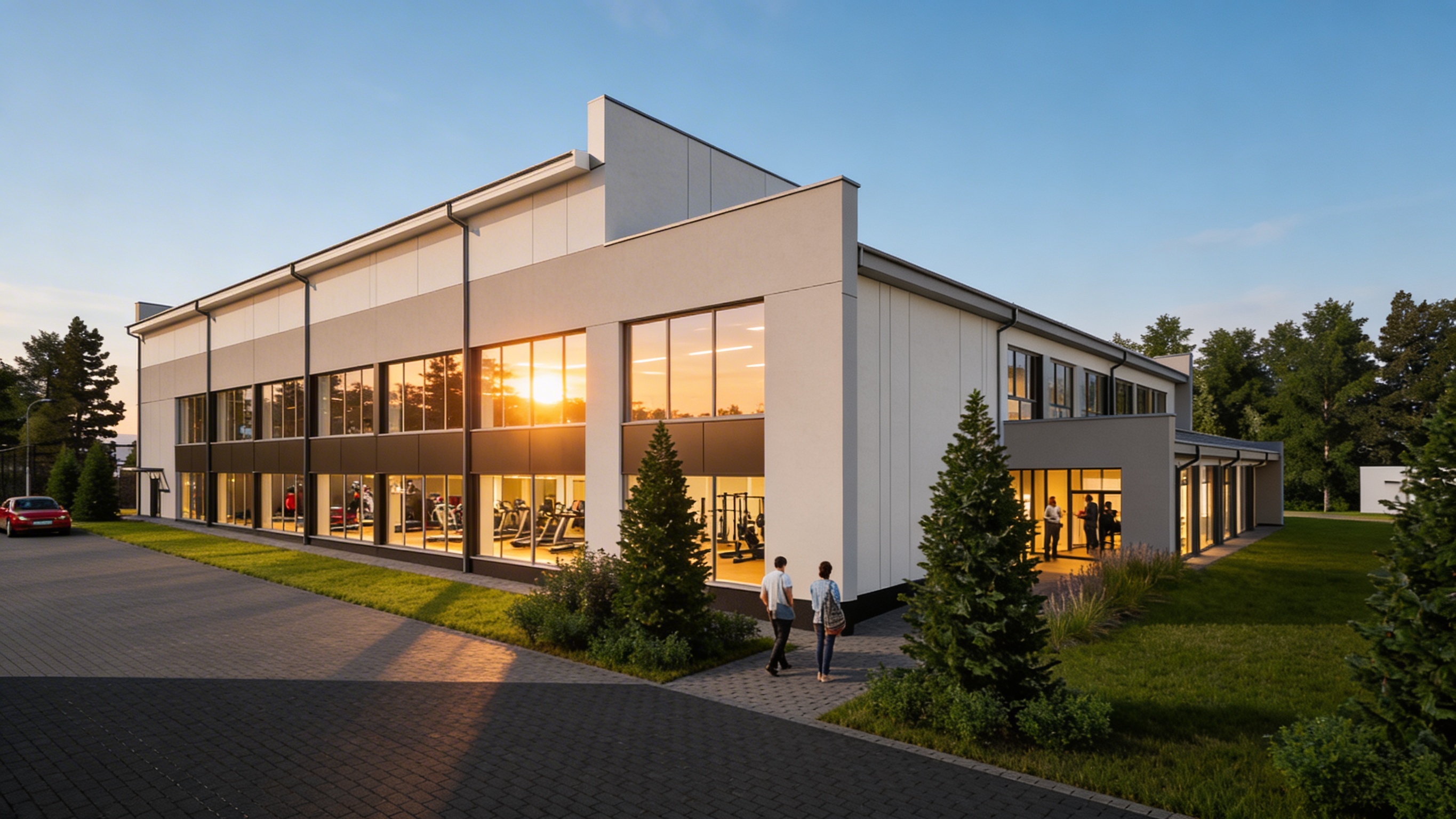 fotorealistyczny widok odbicia w oknach po lewej stronie mecz siatk wki w sali gimnastycznej jasne wn trza wysoka jako naturalna ziele