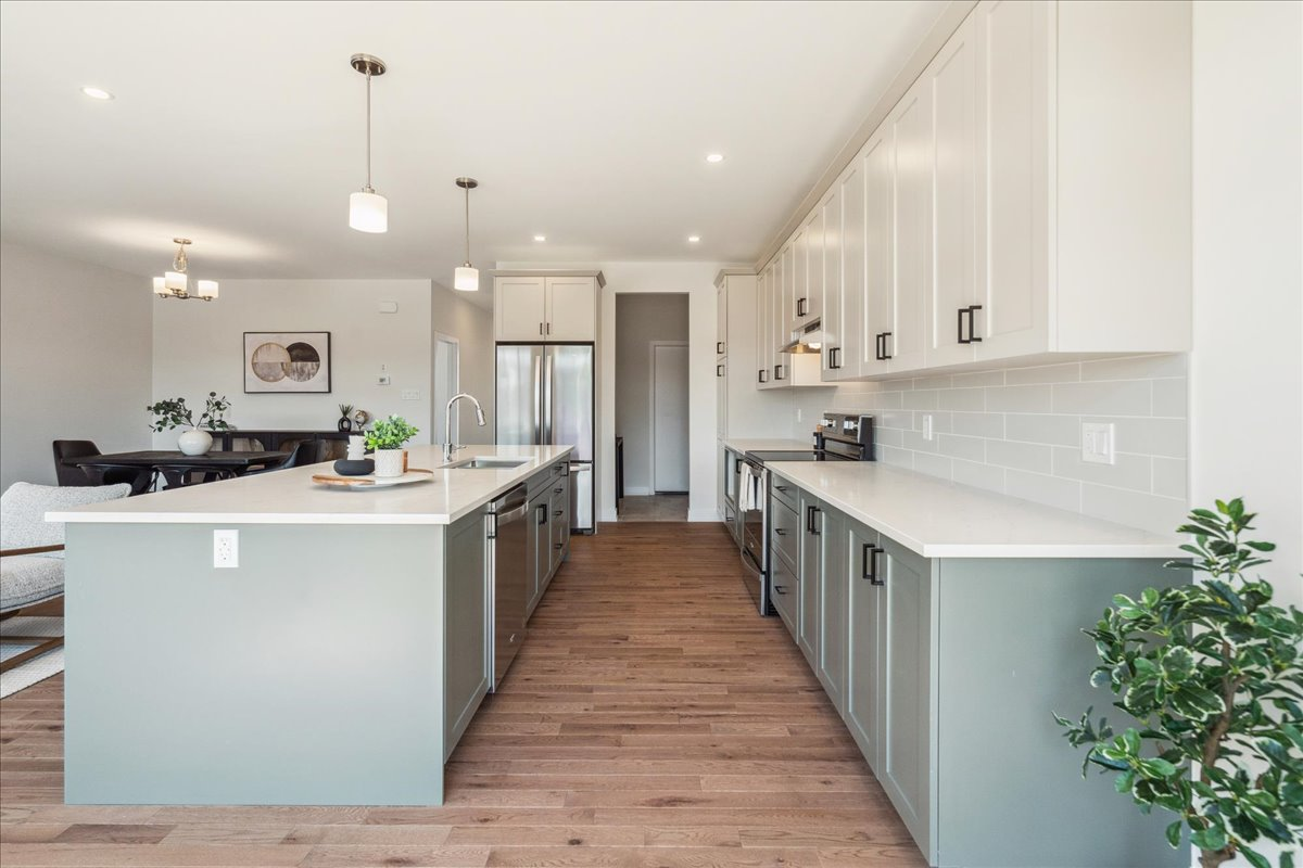 change the lighting to modern pendants and change the artwork to landscape