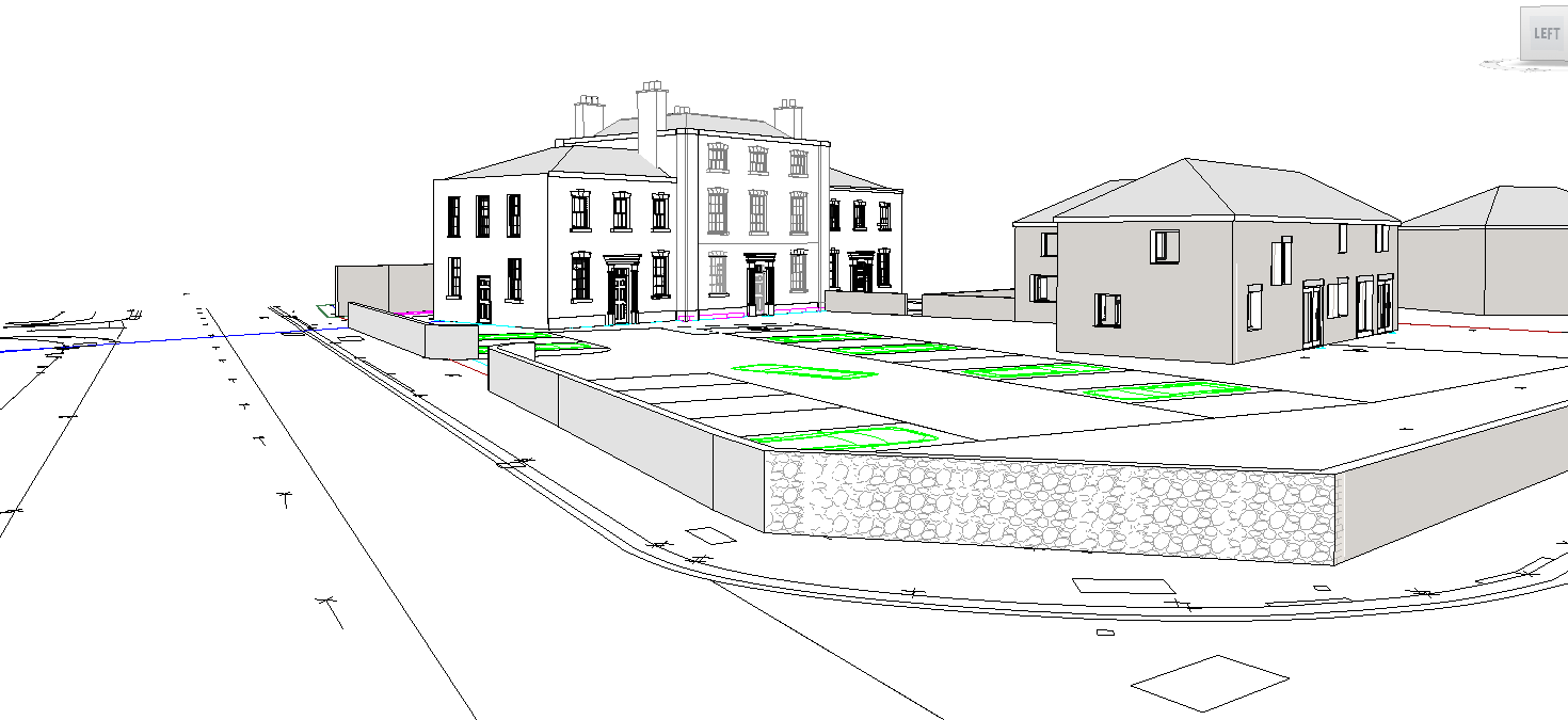turn into a relaistic render with cares parked and soft landscaping and trees