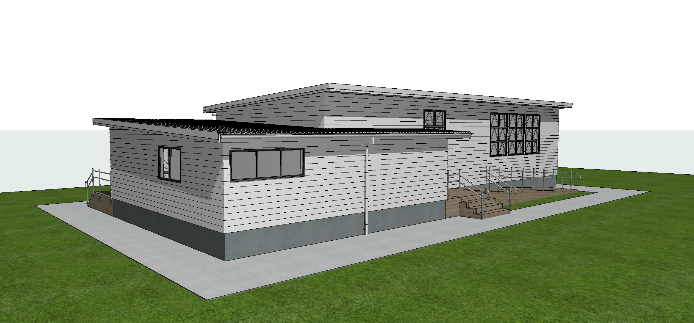 retain structure add grass bush and flax under deck mid grey cladding with open field background