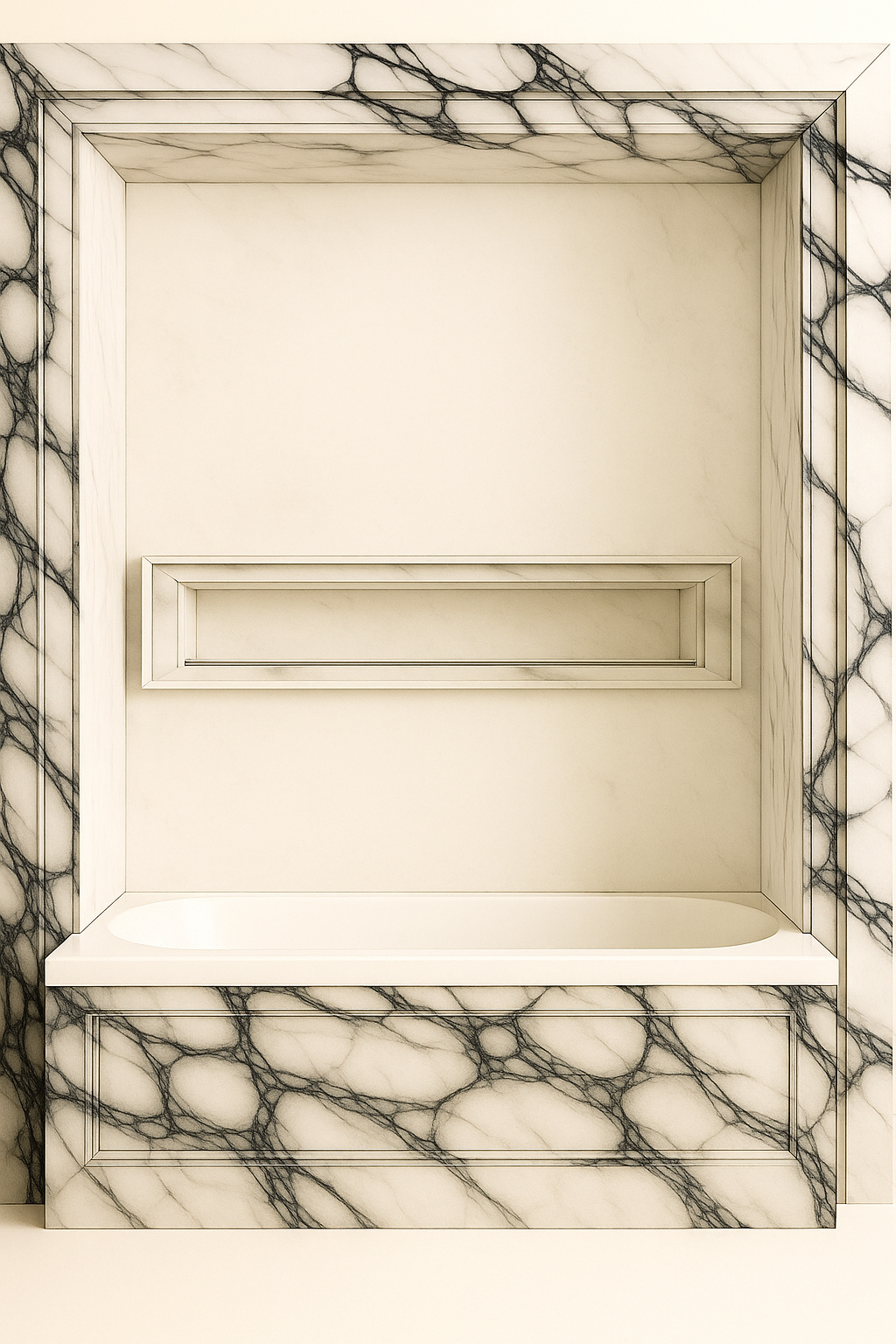 generate an updated bathroom using this bathtub aera install a black wall shower head mounted on the left wall a hand held mounted there too