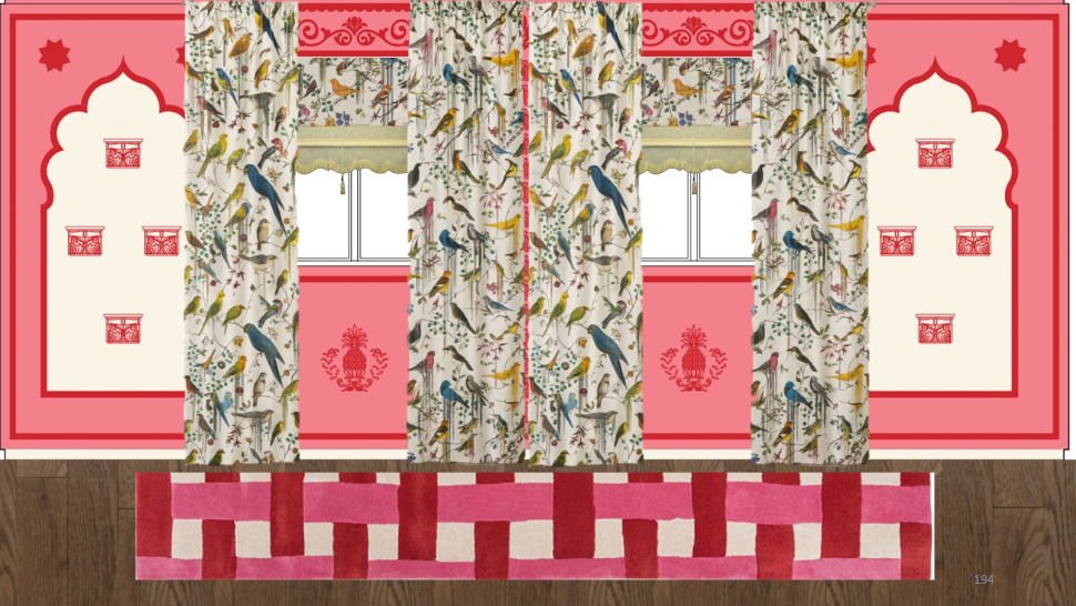 render this bedroom wall and add palm springs scenery to window add natural lighting