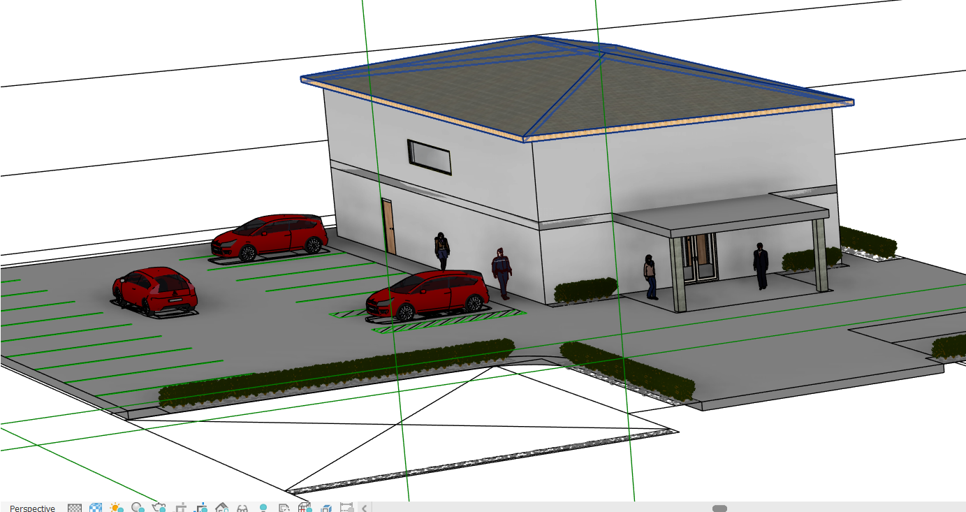 exterior shot do not add any parking or vegetation just enhance what is already there the overhang in front of the building is a driveway for cars so do not elevate it