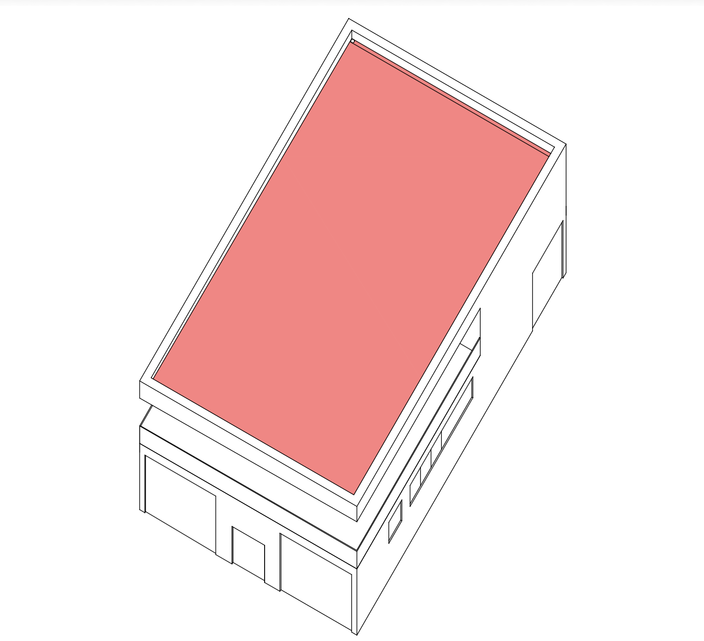 ultra realistic architectural visualization of a contemporary pavilion in an italian urban context sloped roof with the same grey material as the facade seamless surface no color contrast minimal architecture large transparent glass walls terrace with black steel railing steel and glass details realistic concrete and plaster textures soft sunlight cinematic lighting shadows and reflections depth of field photorealistic 4k 35mm lens no red no terracotta roof no tiles