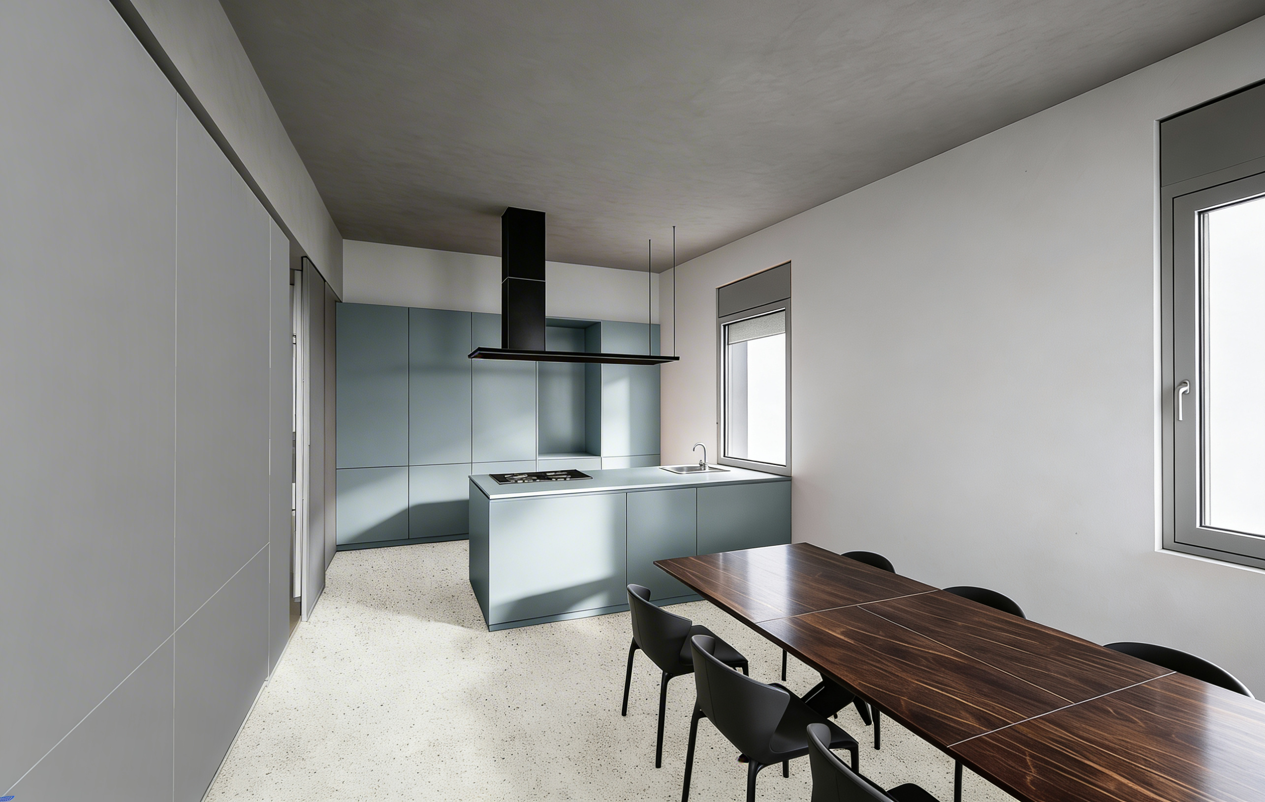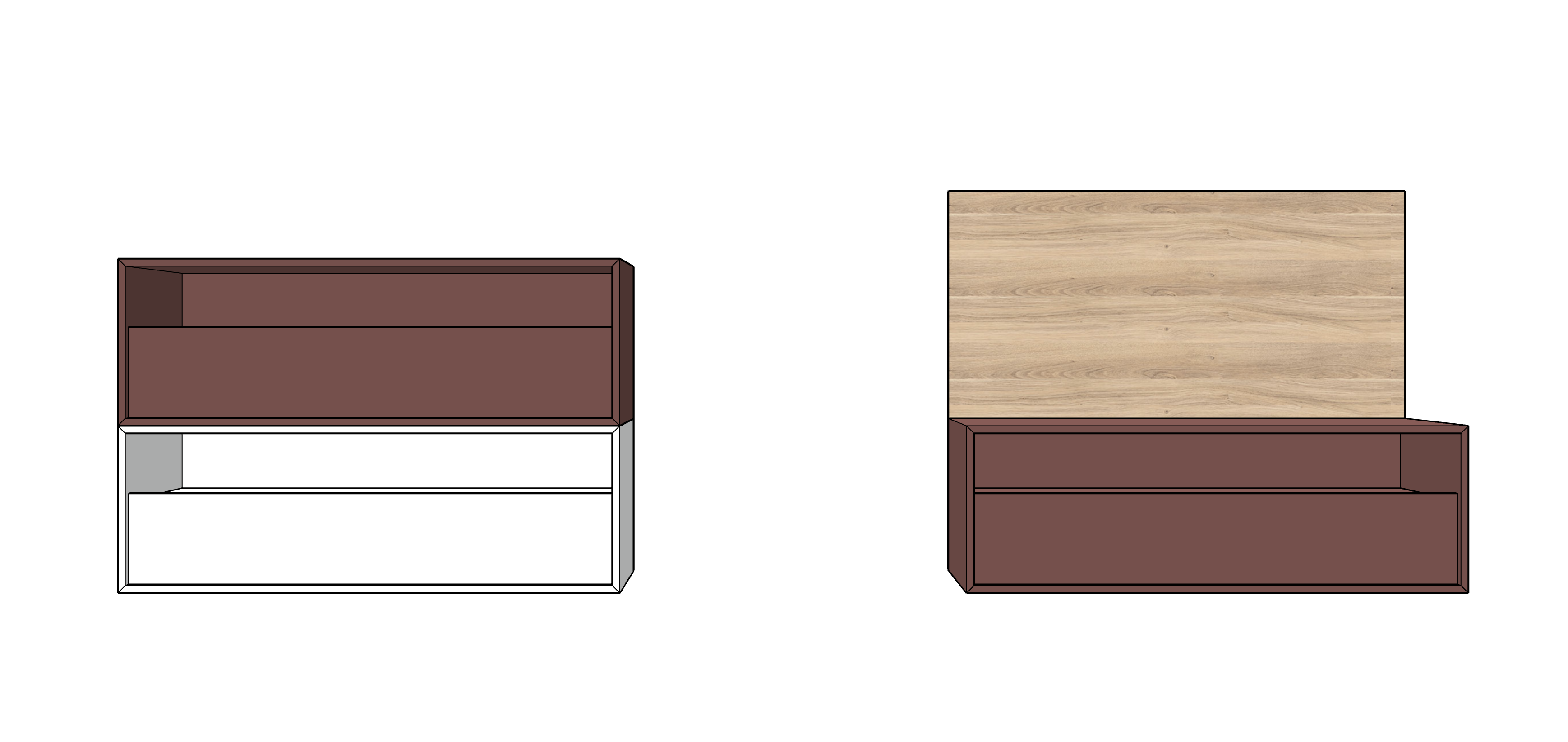 modern furniture in reddish brown white and light oak matt finish concrete floor with white background no decorations no handles
