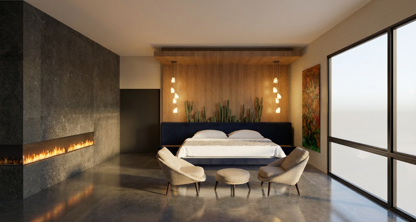refine this image to look hyper realistic and add one neutral chunky throw blankets to the sofa