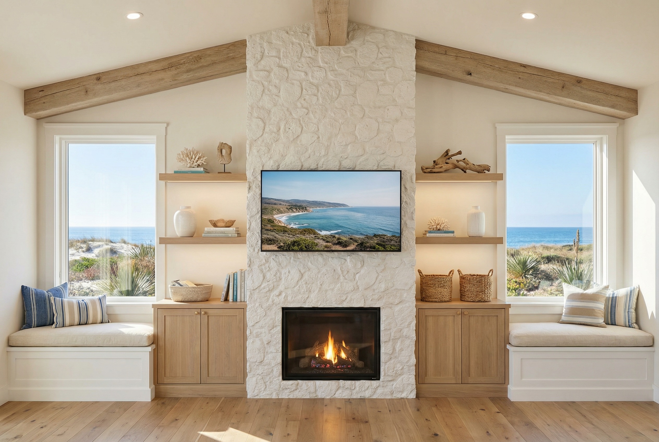 white tongue and groove on the ceiling beyond beams make as realistic as possible