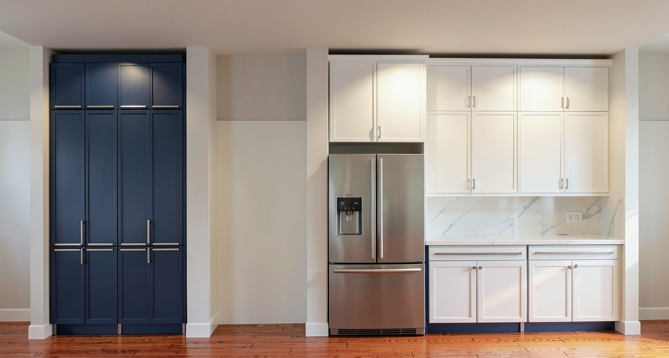 create a photorealistic rendering of a modern two story house surrounded by lush greenery the house features sleek grey walls and a contrasting wood panel section for visual interest accentuate the flat roof and overhangs with a deep charcoal color the windows are large and framed in matte black the garden is vibrant with a variety of tall grasses and shrubs showcasing shades of fresh green pink and light purple include a well maintained driveway leading to a covered carport in the background with subtle elegant lighting along the pathway the atmosphere is serene and contemporary under a clear blue sky with soft natural daylight illuminating the scene highlighting the modern architectural elements