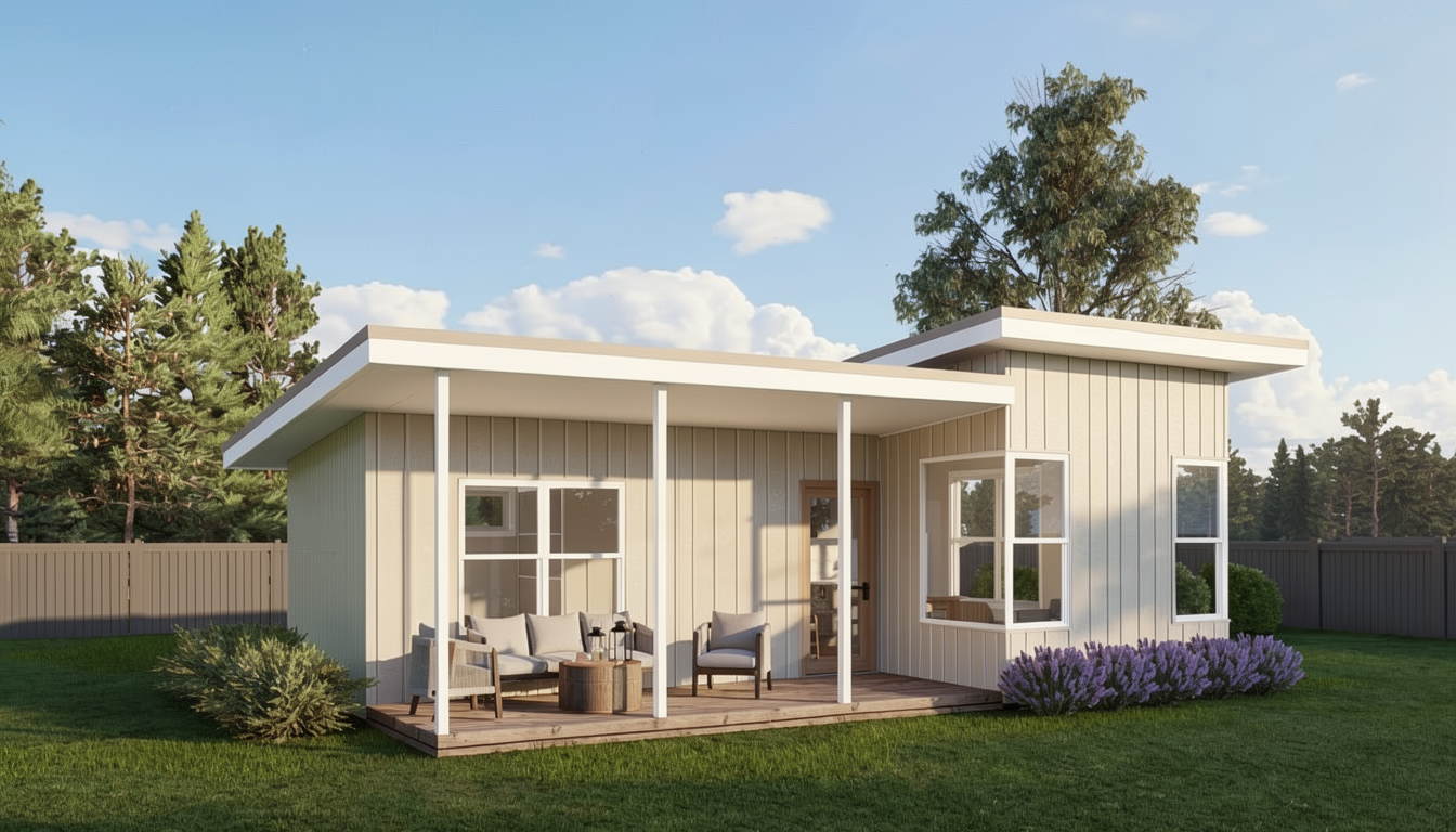 make the wall cladding metal standing seam in beige color but make the widths consistent