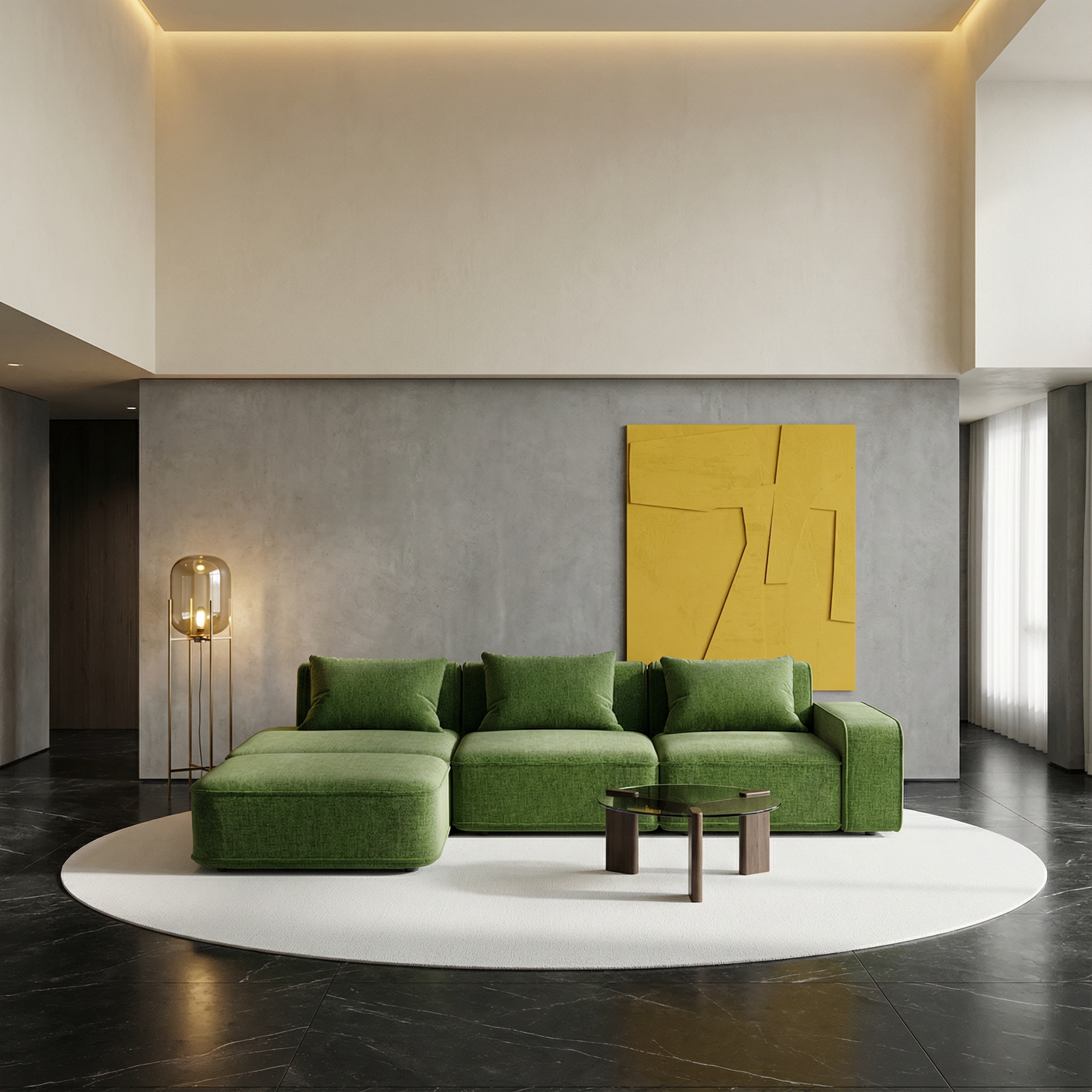 a modern kitchen with a warm and inviting atmosphere light oak cabinets with subtle grain patterns sleek stainless steel fridge and appliances for a contemporary touch white subway tile backsplash for clean lines spacious island with a polished white marble countertop rich dark wood stools with a textured pattern soft neutral beige walls to create a cozy ambiance floor with light gray tile resembling natural stone bright soft lighting to enhance warmth and elegance architecture