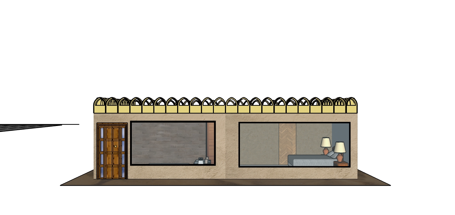 desert resort house make it arabic tradition add date palms make the corners curvy