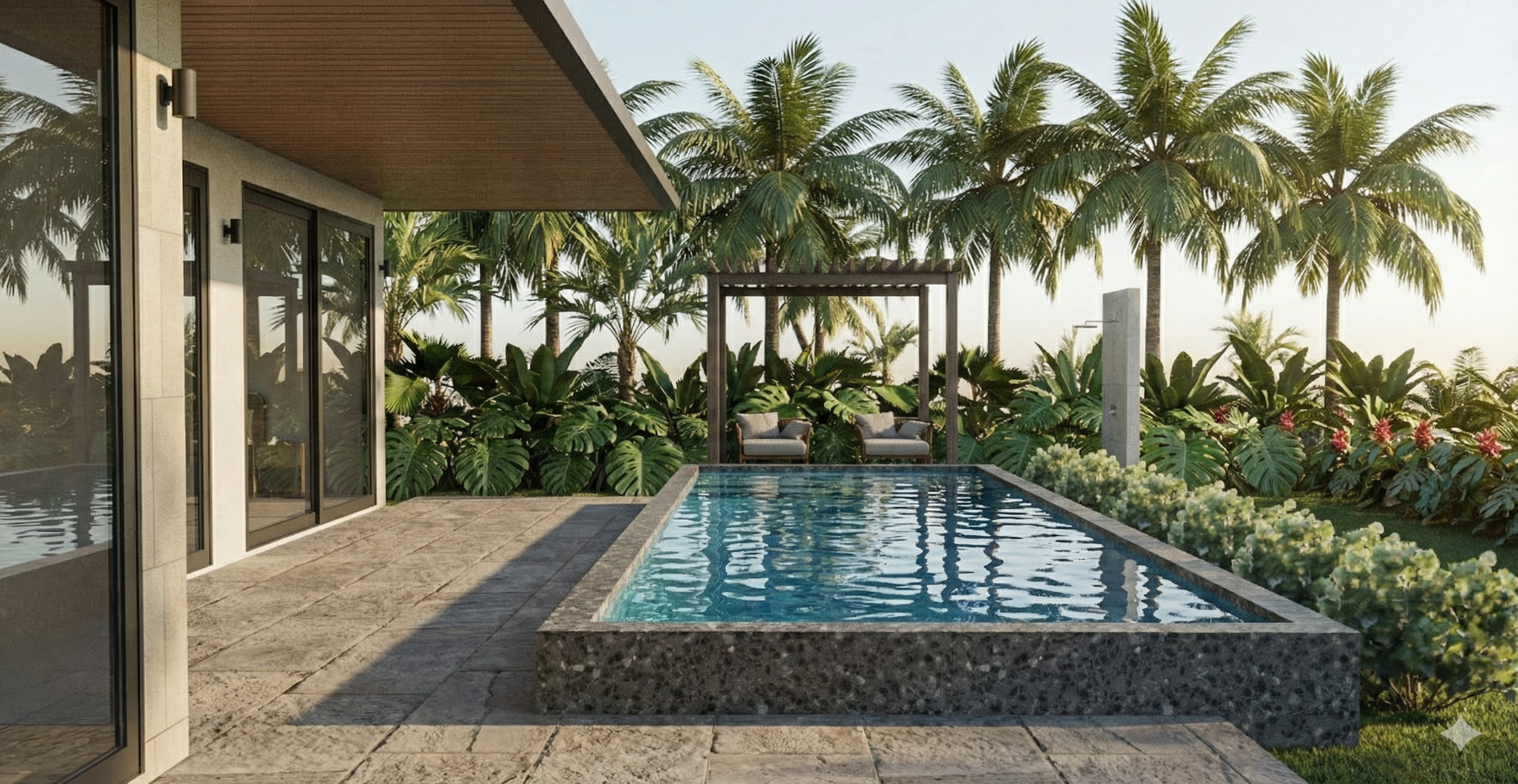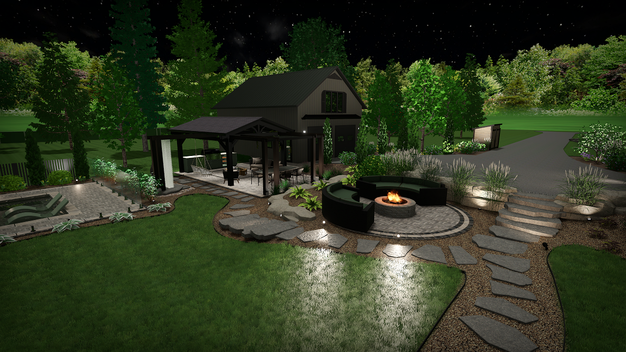 keep the same paved area do not add more vegetation keep the night effect