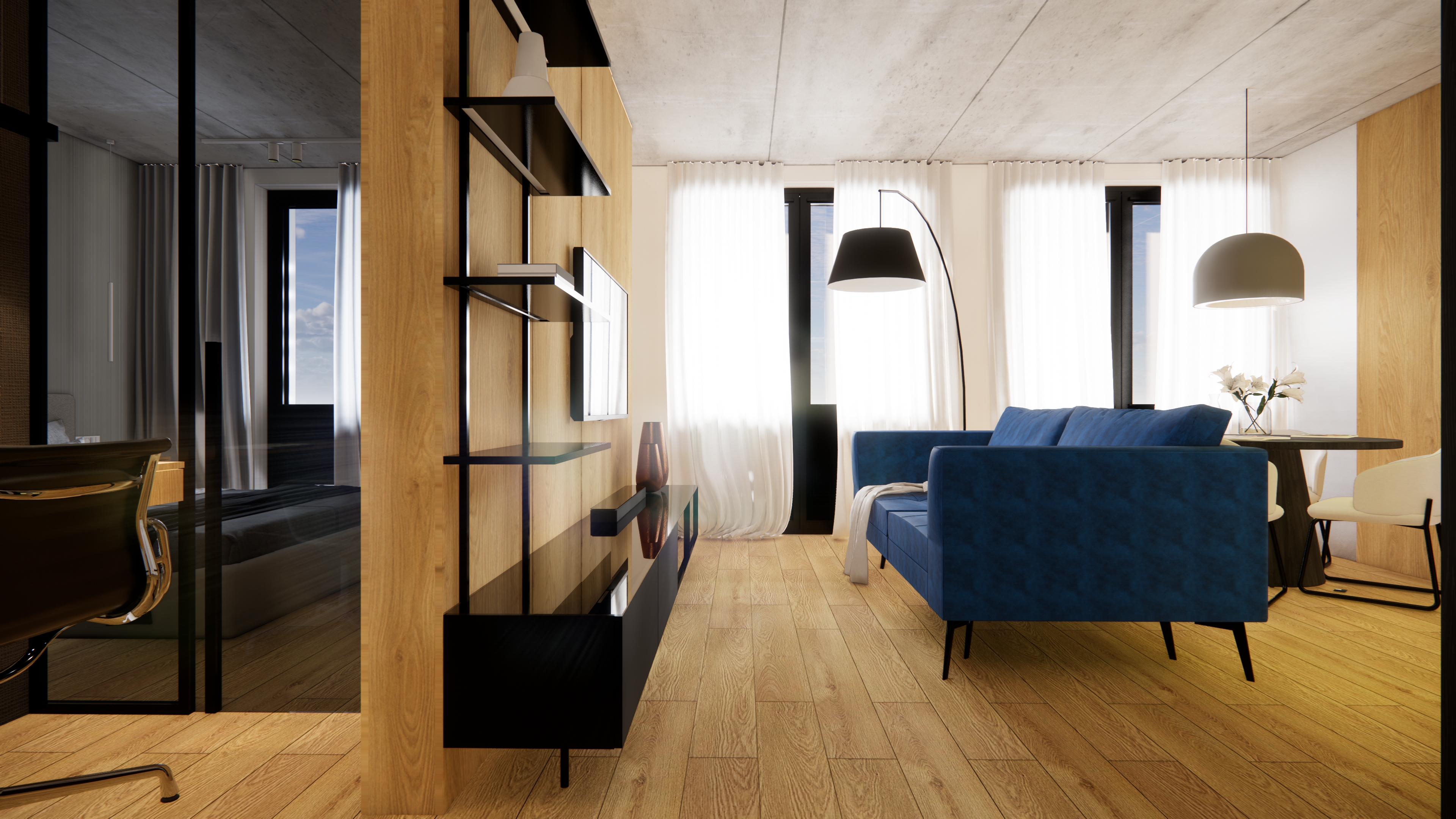 create a photorealistic image add lighting replace materials with photorealistic real materials add reflections and shines to materials insert an ies light cast replace soft materials and cloths for high end real like materials add a person to the image girl in a white short dress sitting motion blurred as a long exposure