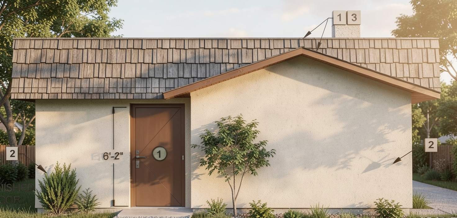 render a photorealistic 3d perspective of this house keep the current materials just enhance them split face limestone walls cream stone floors keep model geometry the same windows doors roof walls enhance the current materials and make the landscape nicer vegetation detailed shadows on cream textured limestone wall and a vibrant clear sky with a few clouds add slight lens flare slight atmospheric depth render in hyper realistic architectural visualization quality 8k resolution