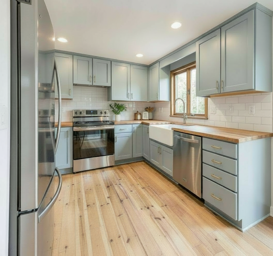 remove the trim piece above the sink between the two wall cabinets