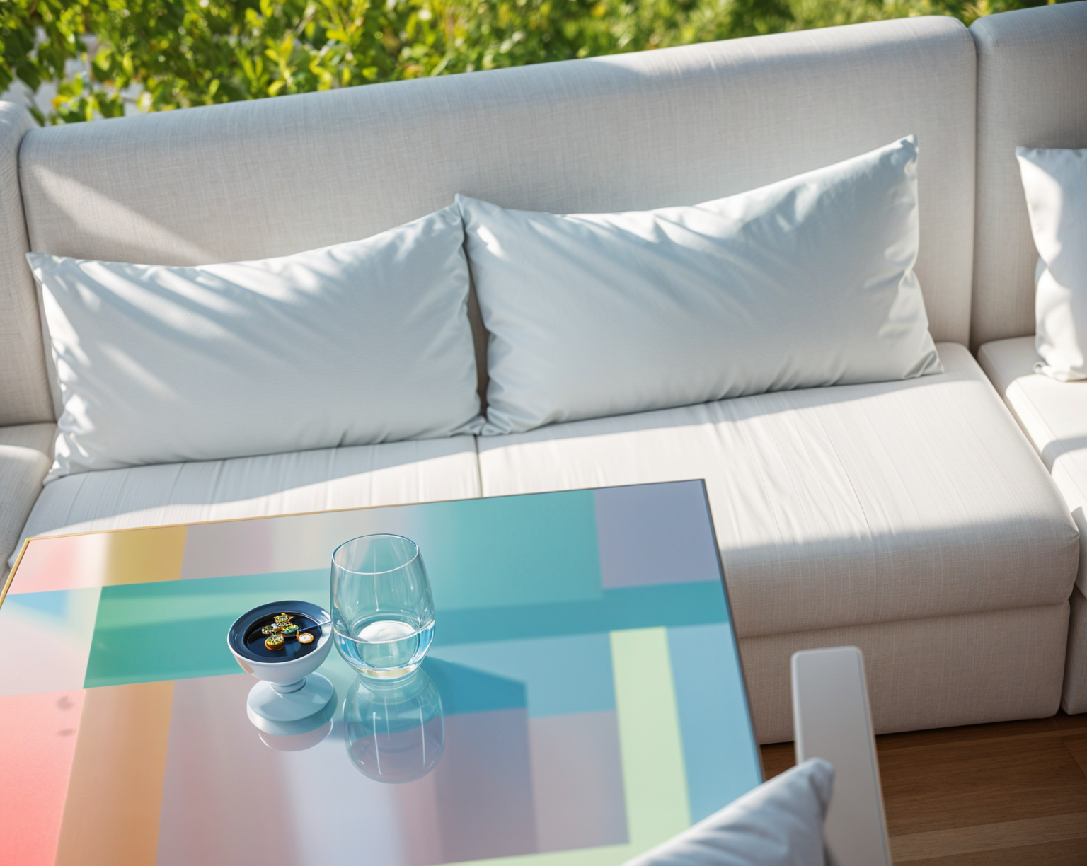 add 3 each pillows each for sofa in light beige color