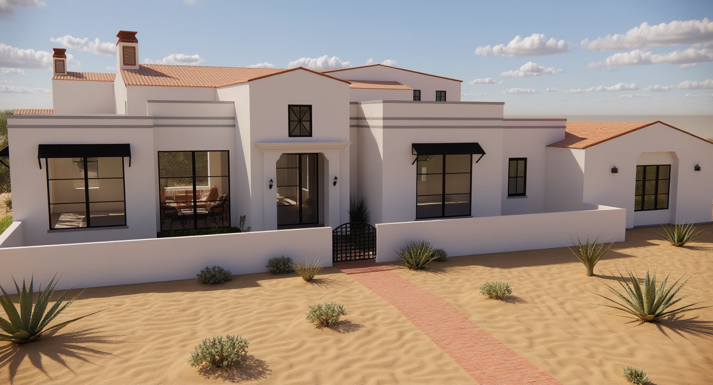 a living room and kitchen wardrobe box terracotta finish material wooden plans french oak light concrete parts of panel walls with rought design of iron beams rest of ceiling and walls white plaster sunrise mood morning lighting