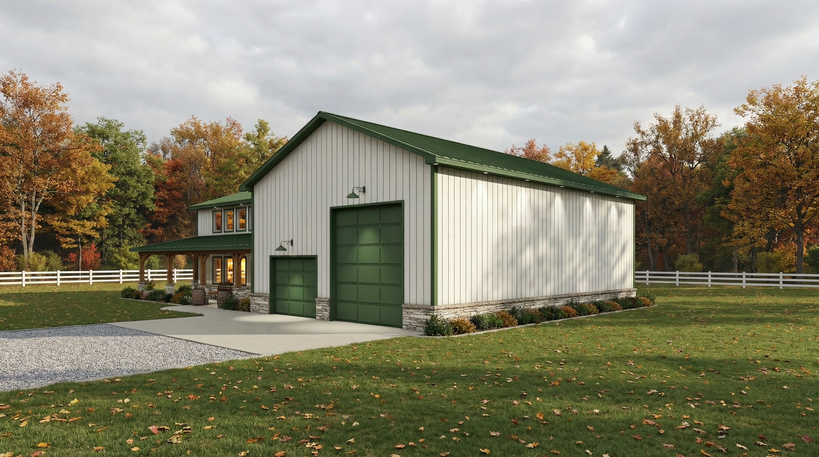 create a stunning 3d architectural rendering based on this layout the building should have a modern design with a white and gray exterior finish large glass windows and a sleek minimalist aesthetic surrounding the building add lush green landscaping with vibrant flowers and tall trees the parking lot should be detailed with dark gray asphalt and white parking lines cars should be modern and varied in colors like blue red silver and black for the overall atmosphere use a bright and sunny day with a clear blue sky casting natural shadows and highlighting the building s features