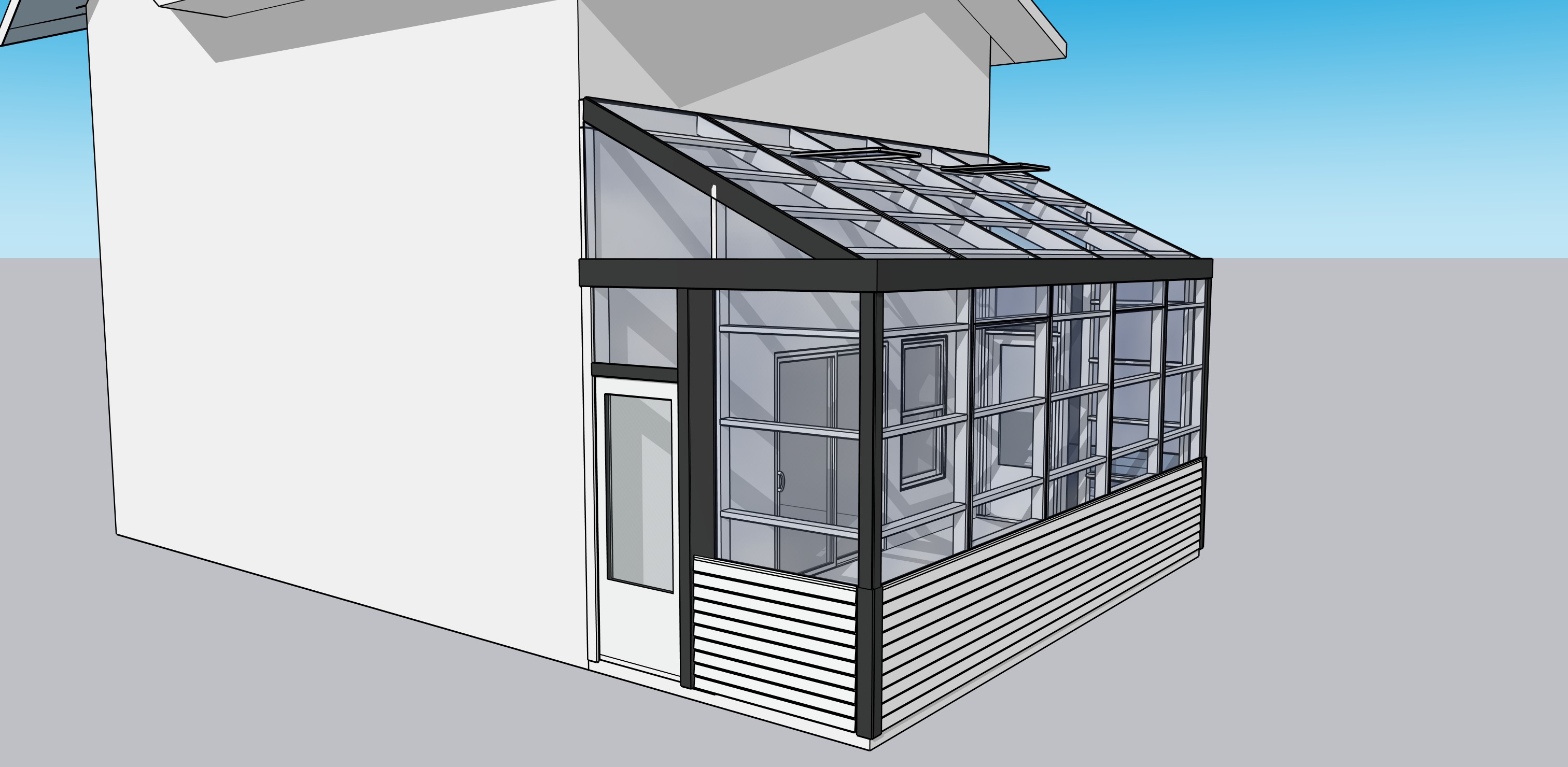 add hardie plank siding windows and roof to the main house add soil and landscape on the exterior and do not add any other structures make it photo realistic make it white elegant siding and landscape