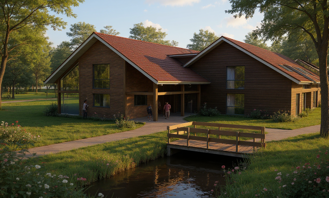 reflects on the windows mediterranean trees and villas in the background add some olive trees near the house a bit of sun on the facade ajoute des lauriers roses