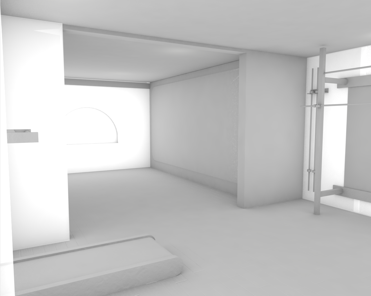 ajoute un grand miroir sur tout le mur de la salle de dans qui se trouve au fond