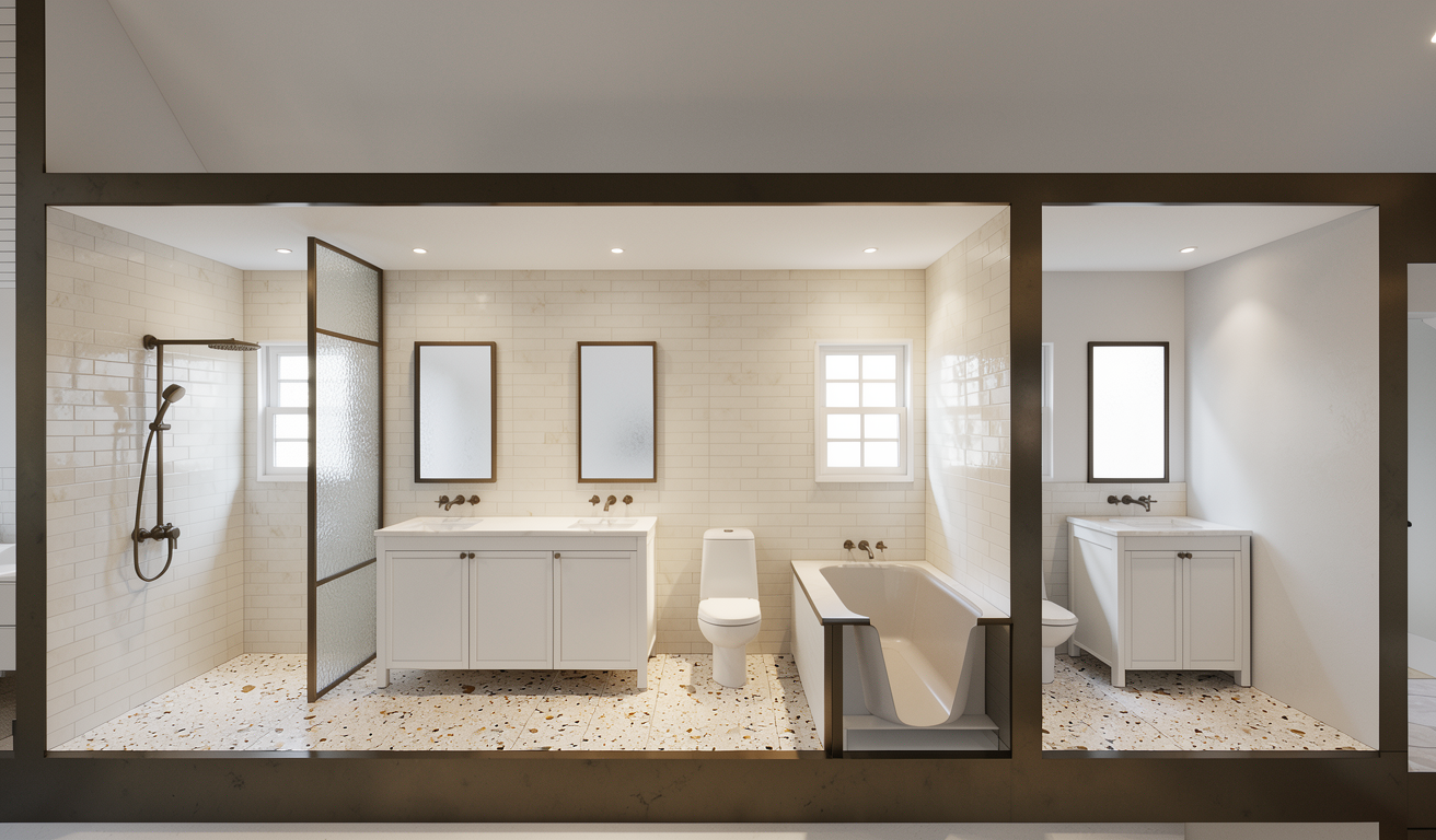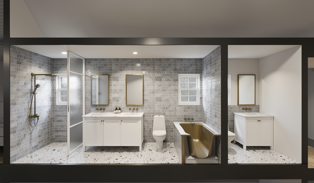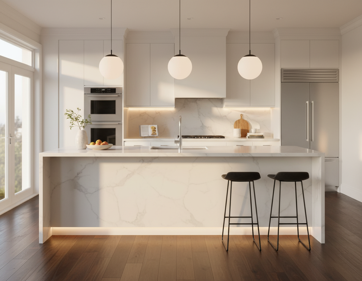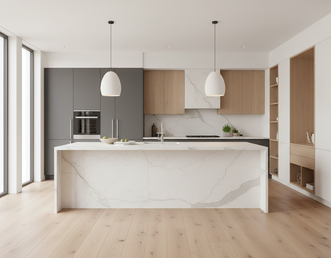 please create a rendering of this floating built material should be rift cut white oak modern and streamlined