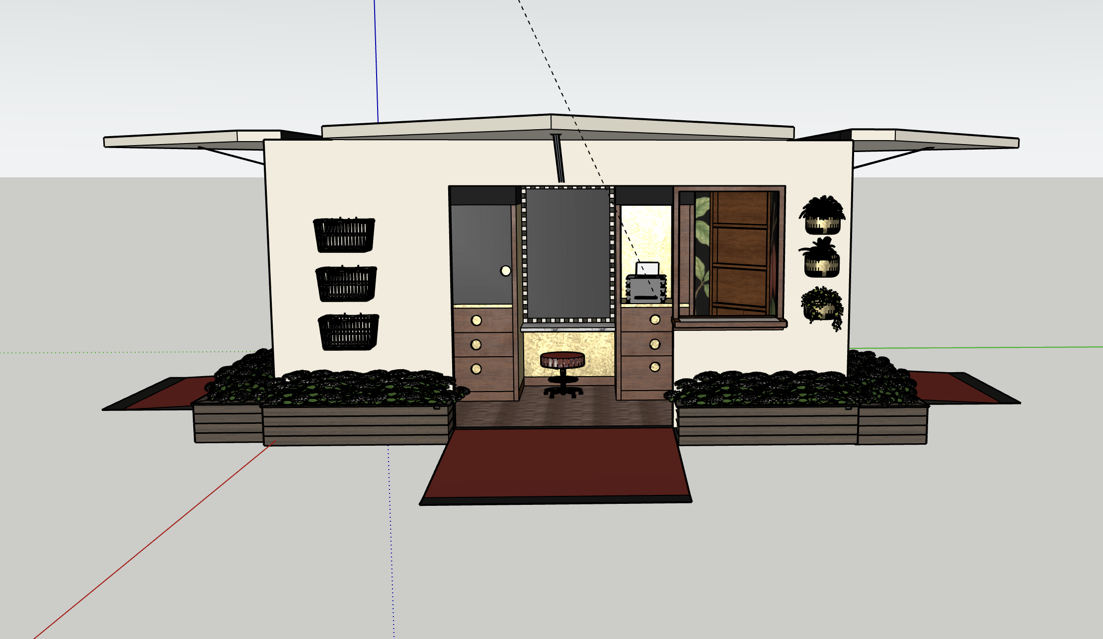 exterior shot keep original proportions 100 red chair within a boutique retail space sits in front of a black and white mirrored vanity copper mosaic flooring shines brass elements offer a warm glow