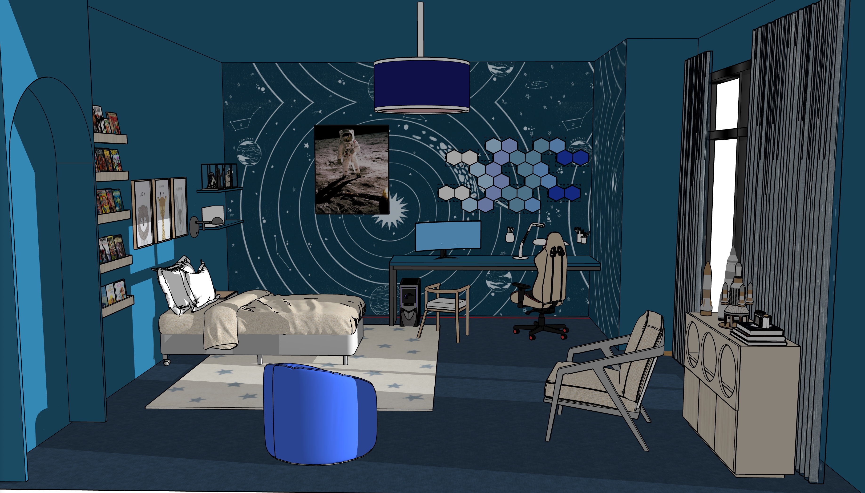 bee hives on the wall are lamps
