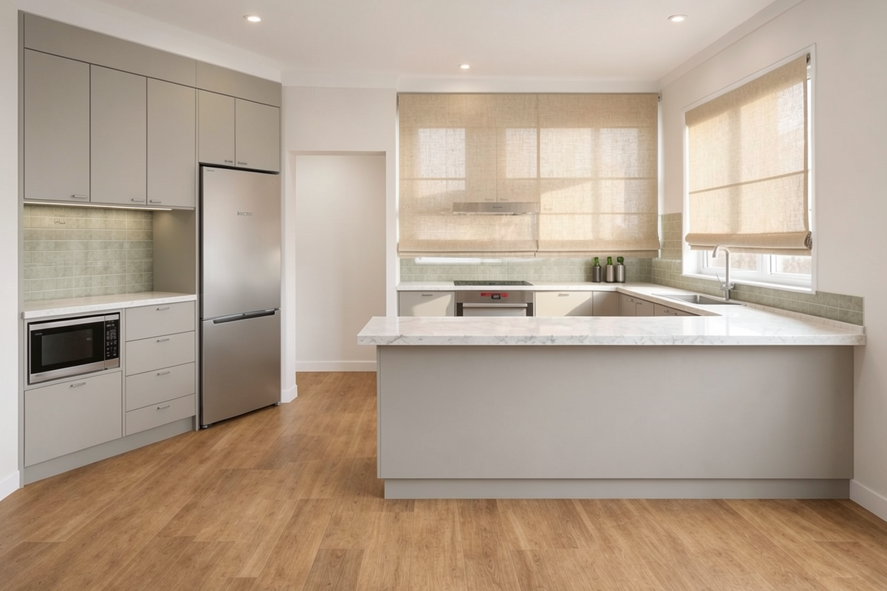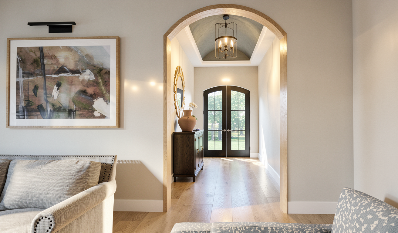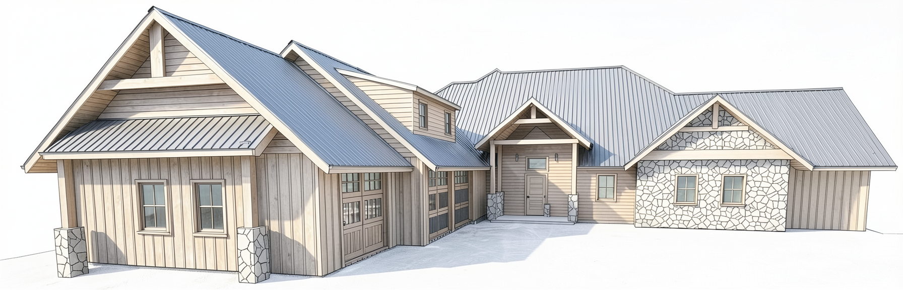 transform this archicad image into a high resolution render include landscaping a car and trees in the background