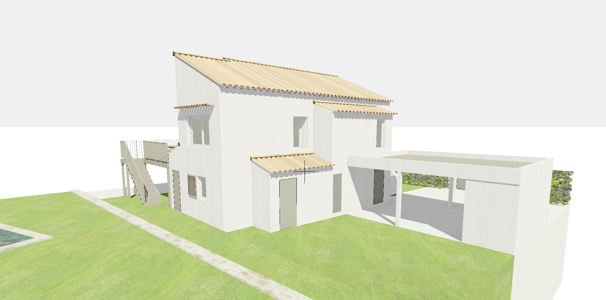 reflects in the windows mediterranean pine trees and villas in the background